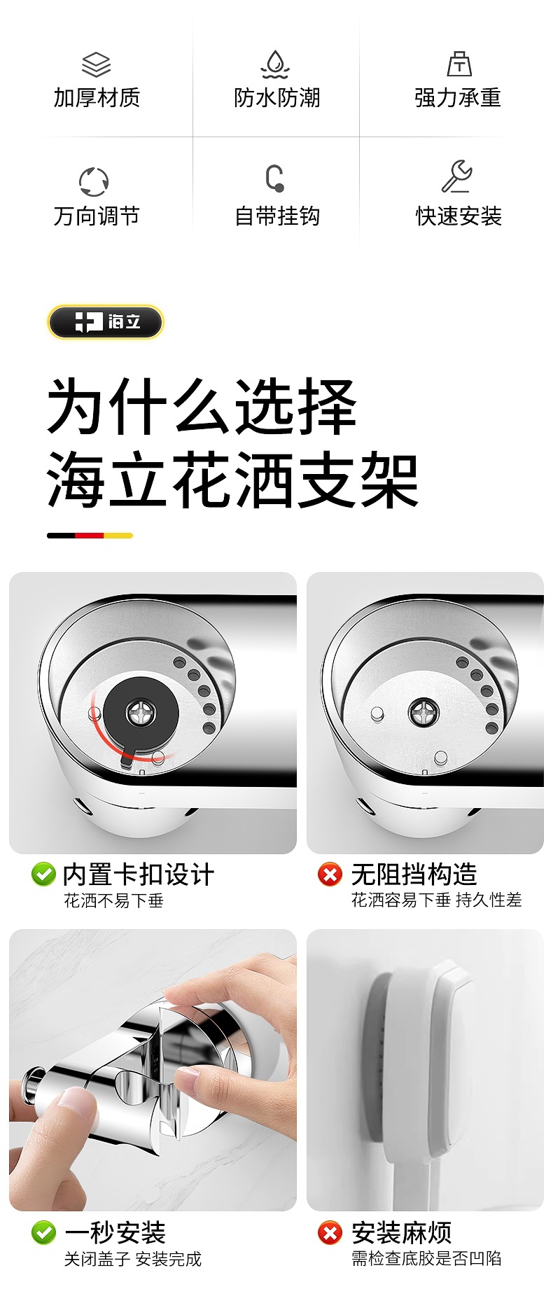 • [대형 흡착컵/이동식/후크부착] 샤워홀더❤전기도금된 은●낙하 보상 보장