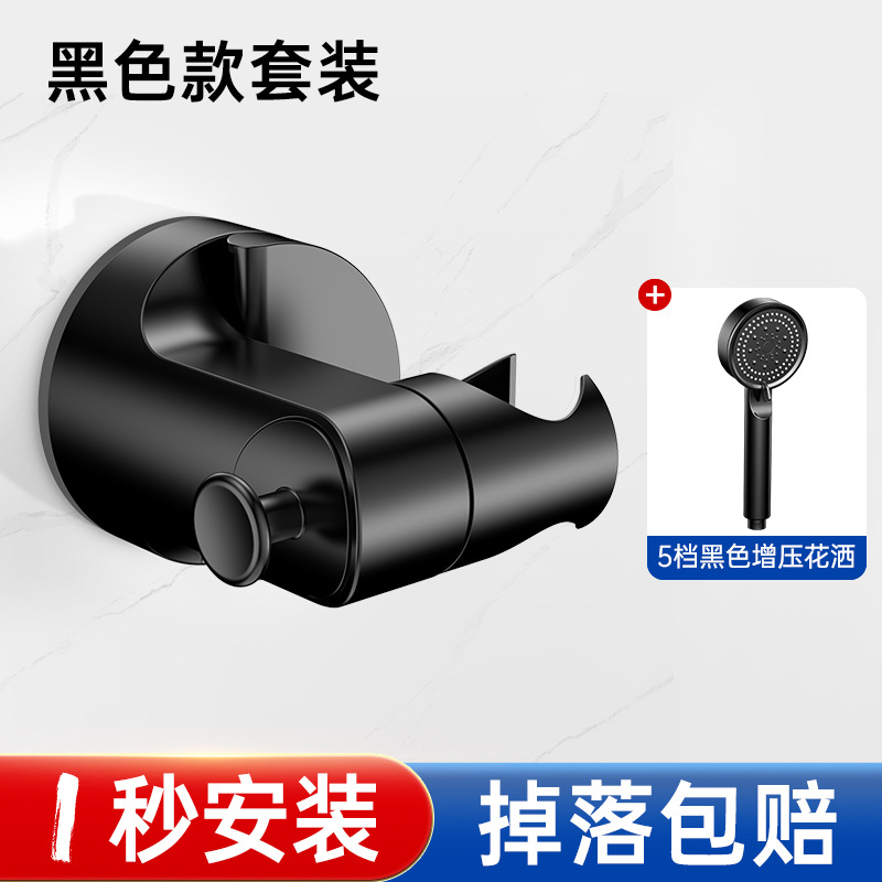 • [옵시디언 블랙 세트 1] 흡착컵 브라켓 + 5단 블랙 슈퍼차저 샤워헤드