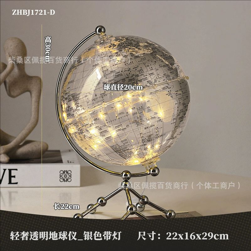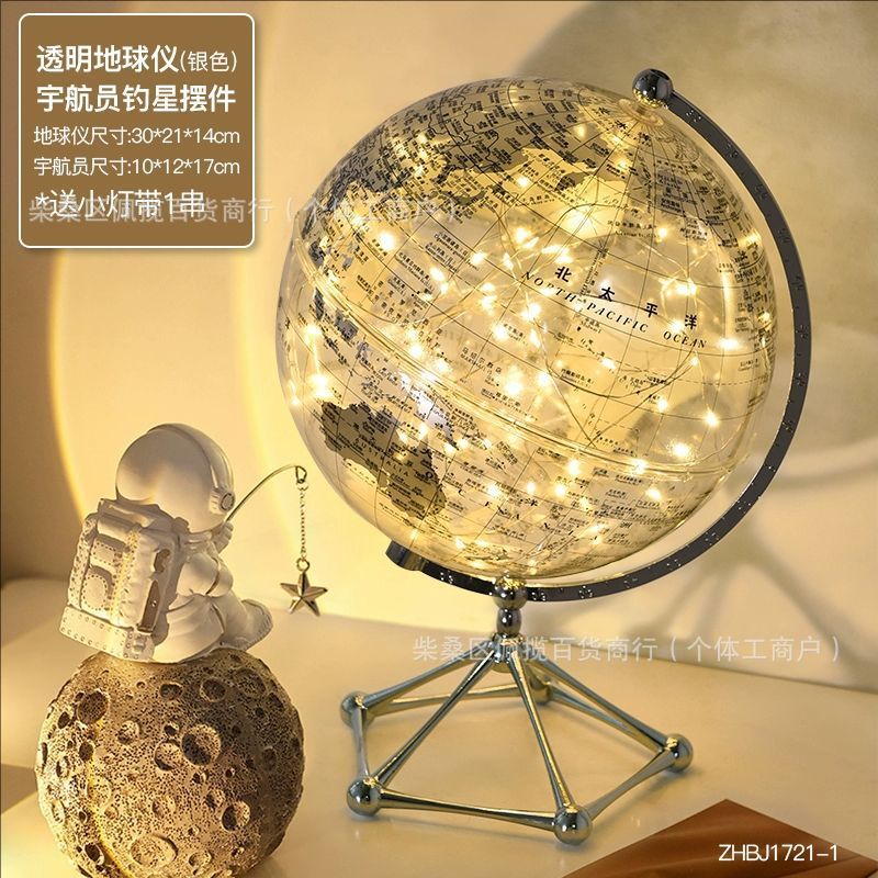 • 은색 투명 지구본 + 라이트 스트립 + 우주 비행사 장식품 메인 사진