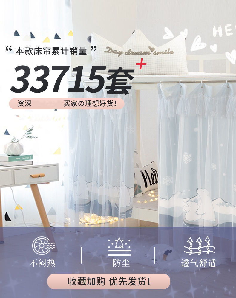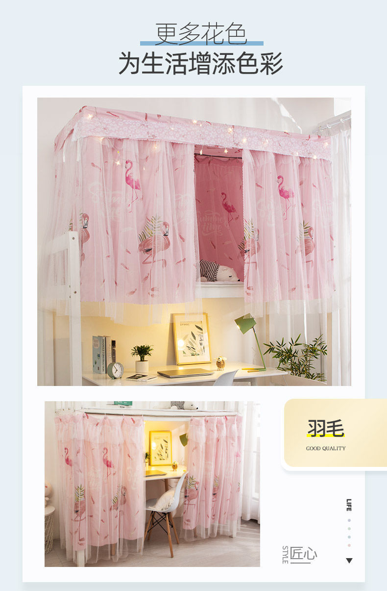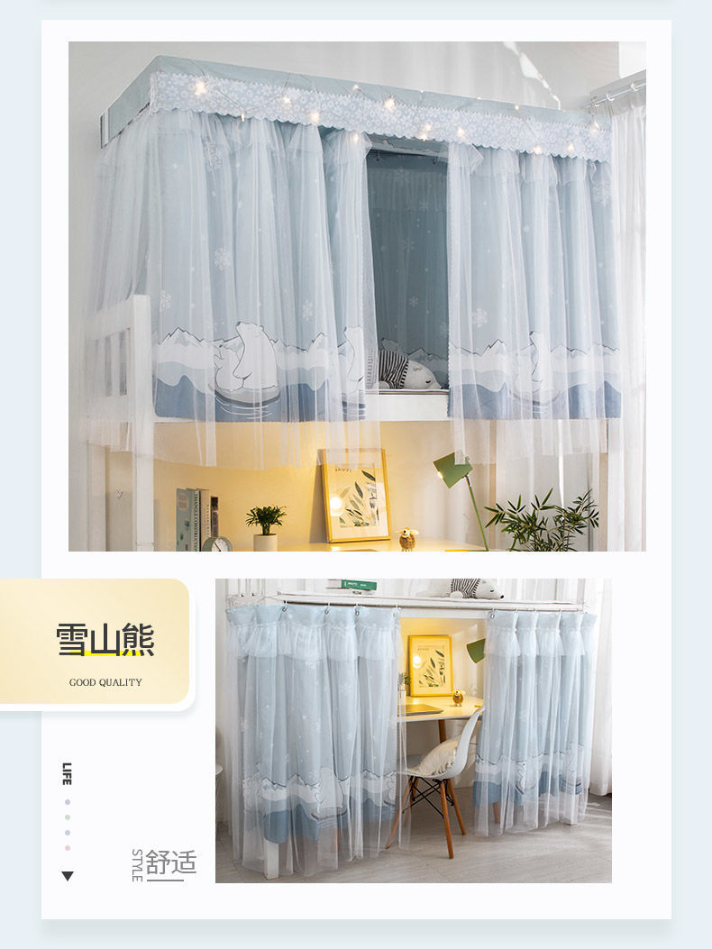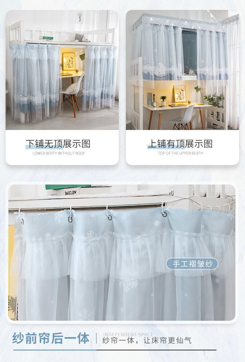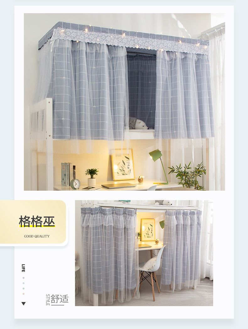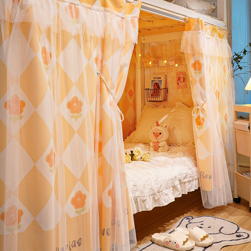 침대 커튼 통합 학생 기숙사 모기장 음영 천 상단 및 하단 이층 여성 커튼 침대 대학 기숙사 파티션 커튼 제조업체스토어 가기