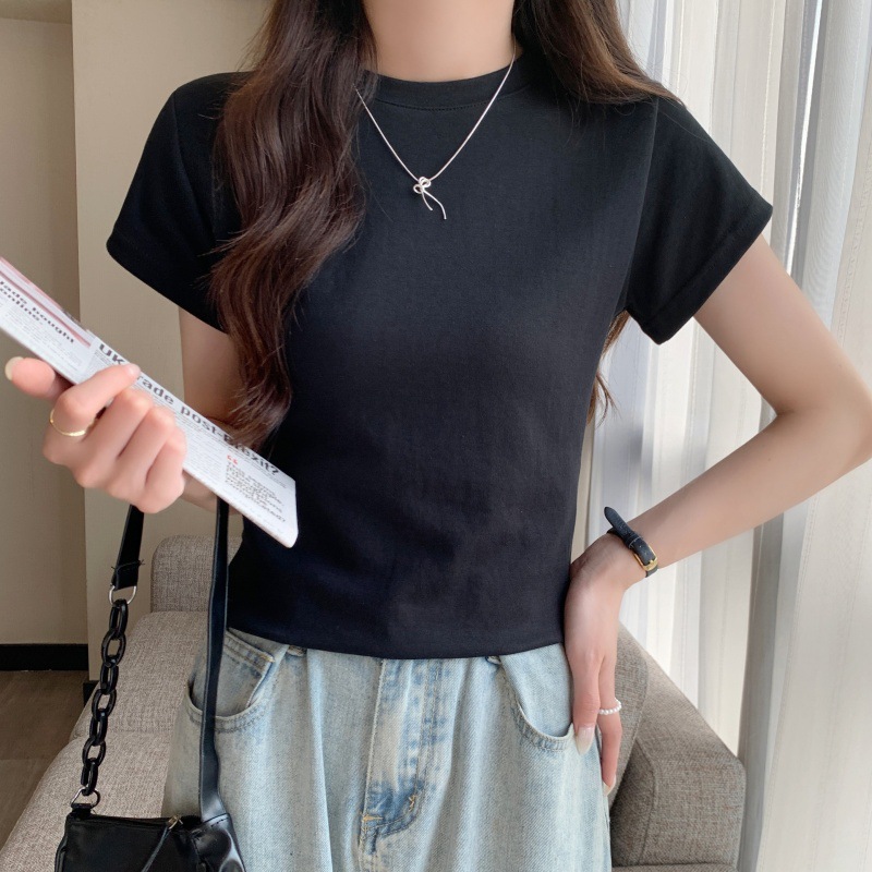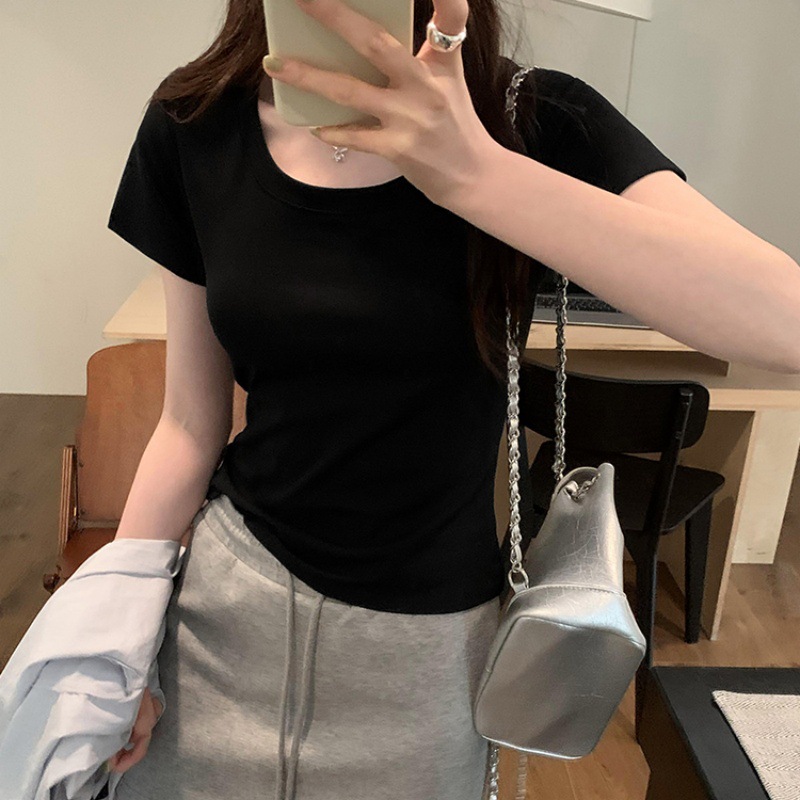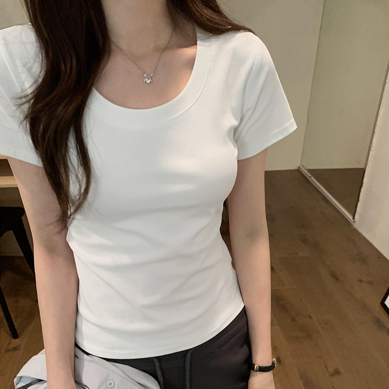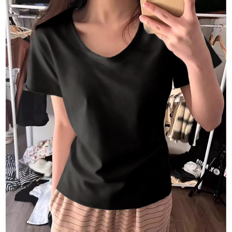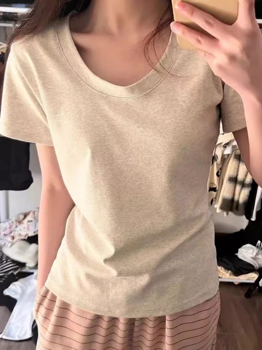 통근 어깨 반팔 V 넥 티셔츠 여성용 여름 얇은 퓨어 코튼 슬림 핏 슬림 핏 올 매치 그레이 스트레치 탑스토어 가기