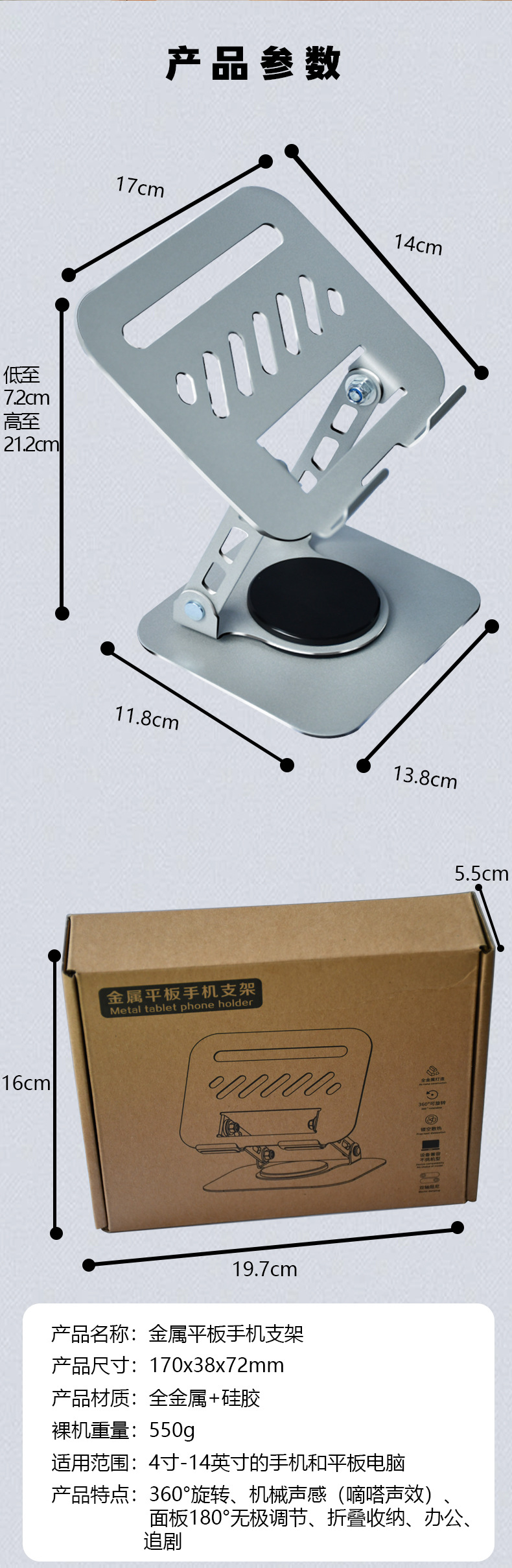 새로운 360 도 회전 탄소강 리프팅 노트북 플랫 브래킷 접이식 열 분산 매달려 다기능 브래킷스토어 가기