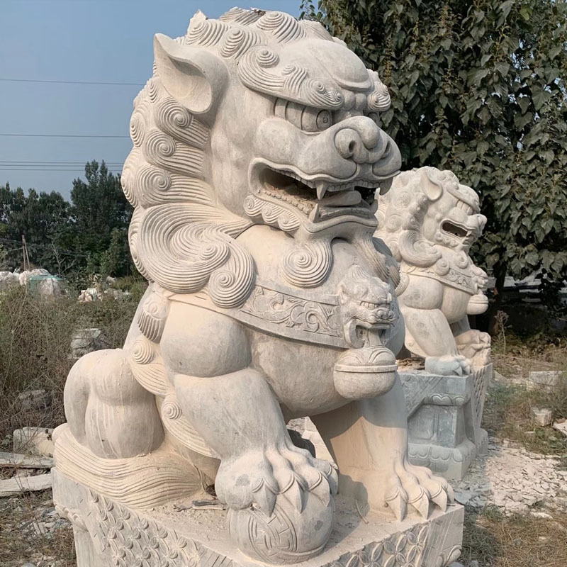 돌 조각 Bluestone Stone Doorway Temple Home Ancestral Hall Mouth Hotel White White Jade 화강암 장식품을 보는 사자 쌍스토어 가기