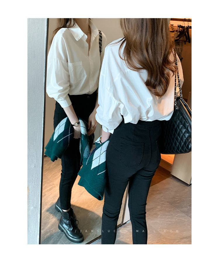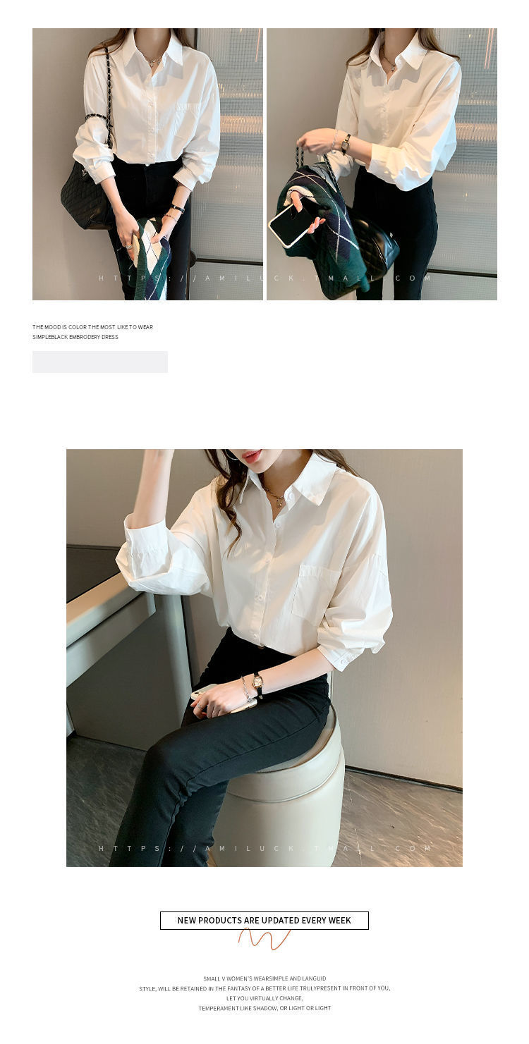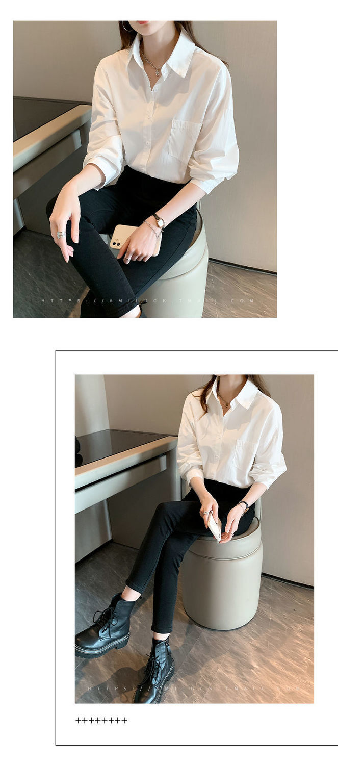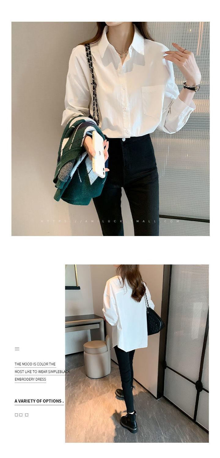 여성을위한 순수 코튼 스타일 화이트 셔츠 2025 새로운 디자인 탑 캐주얼 바닥 셔츠 긴팔 이너 레이어링 셔츠스토어 가기