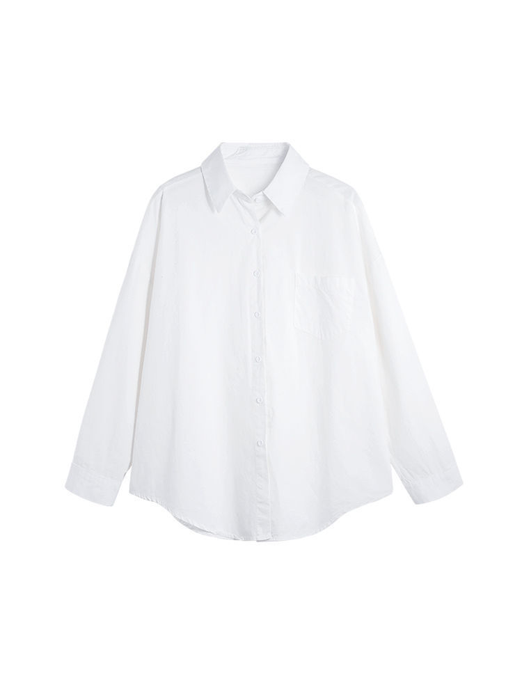 여성을위한 순수 코튼 스타일 화이트 셔츠 2025 새로운 디자인 탑 캐주얼 바닥 셔츠 긴팔 이너 레이어링 셔츠