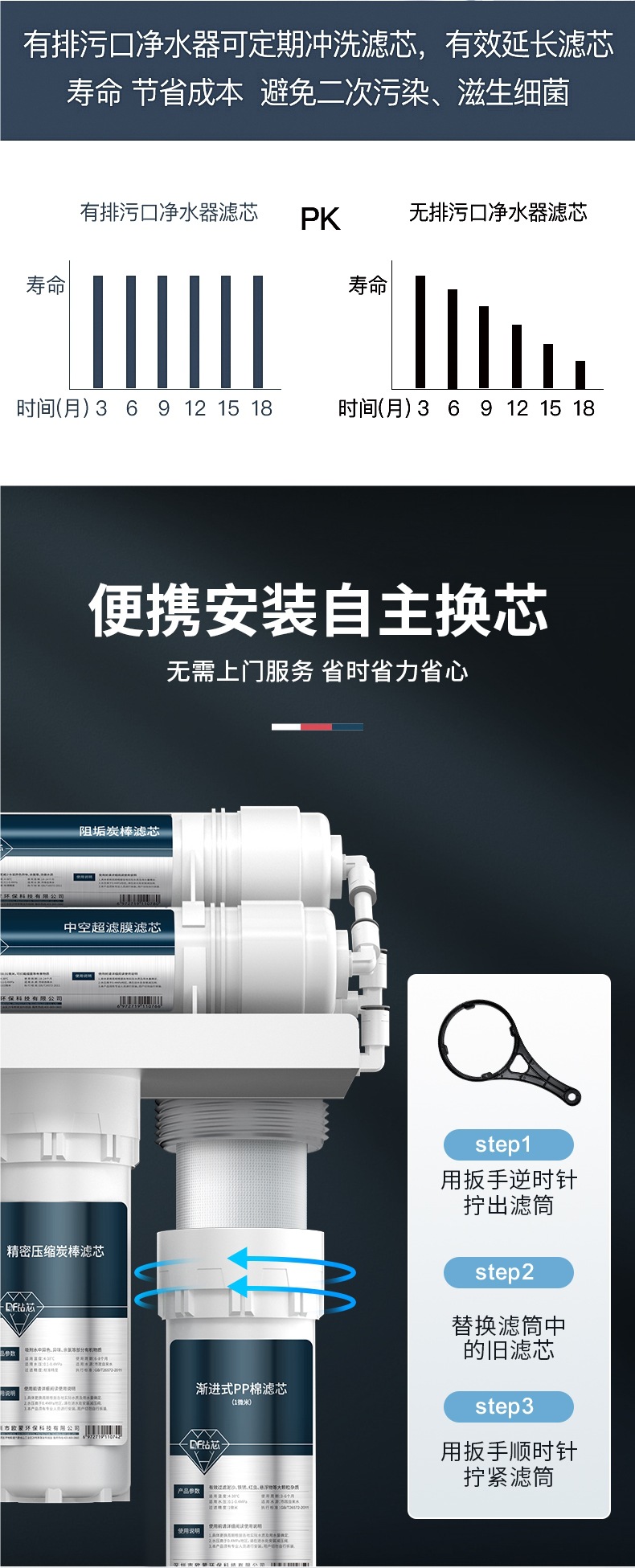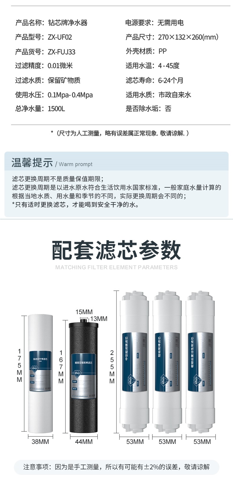 • 업그레이드된 스케일 방지 모델 [레벨 6]에는 2년 필터 요소가 포함되어 있습니다.