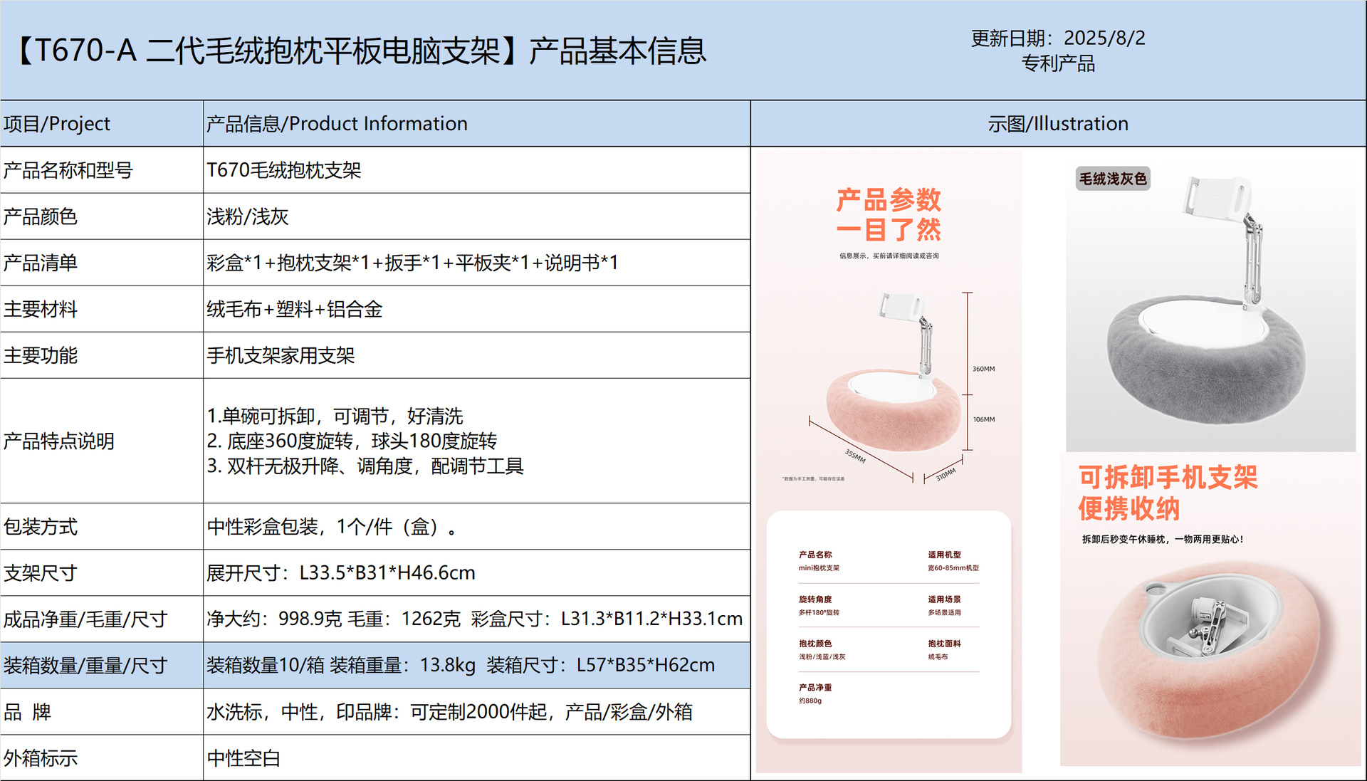 새로운 아마존 다기능 저장 상자 낮잠 사무실 봉제 베개 휴대 전화 태블릿 유니버설 라이브 스탠드