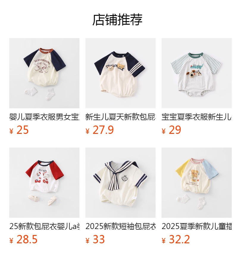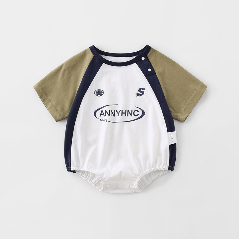 아기 여름 옷 2025 새로운 여름 아기 옷 얇고 세련된 대비 색상 반팔 아기 점프 슈트스토어 가기