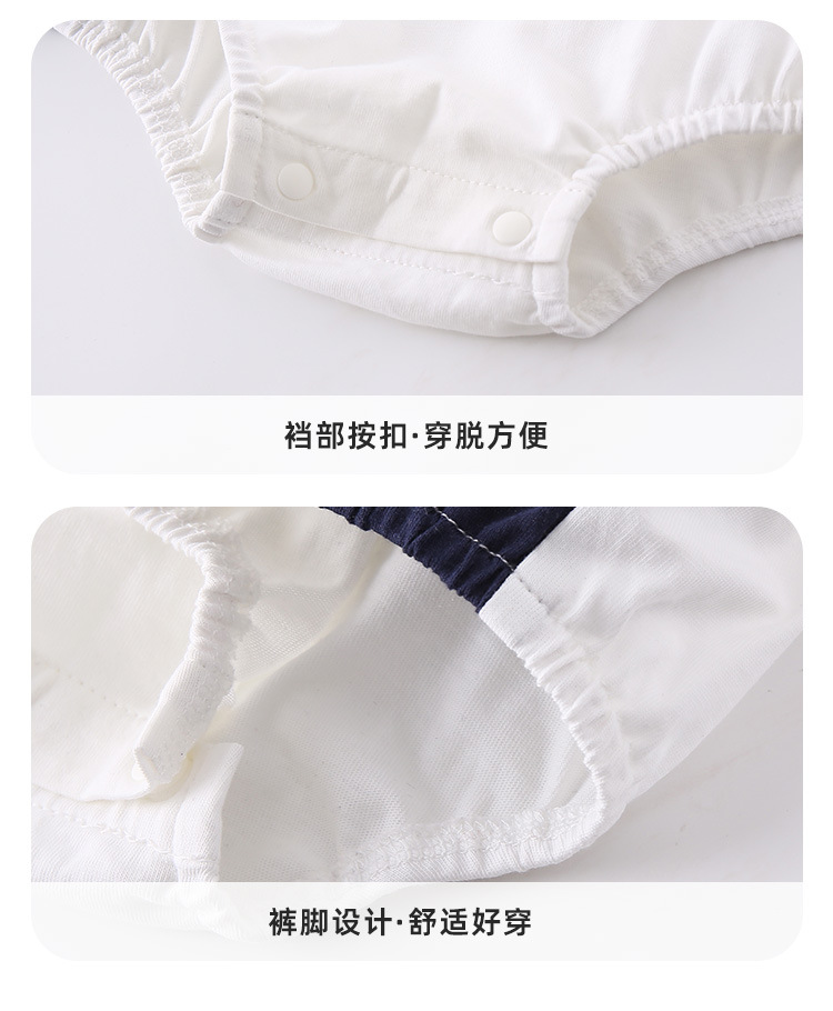 아기 여름 옷 2025 새로운 여름 아기 옷 얇고 세련된 대비 색상 반팔 아기 점프 슈트