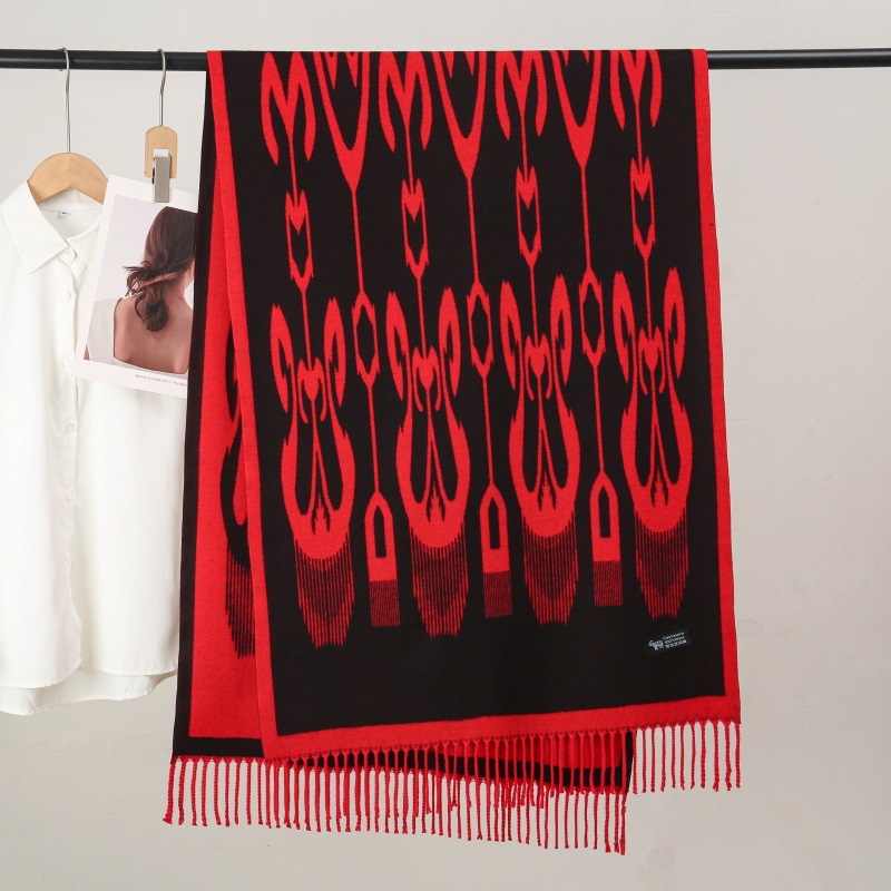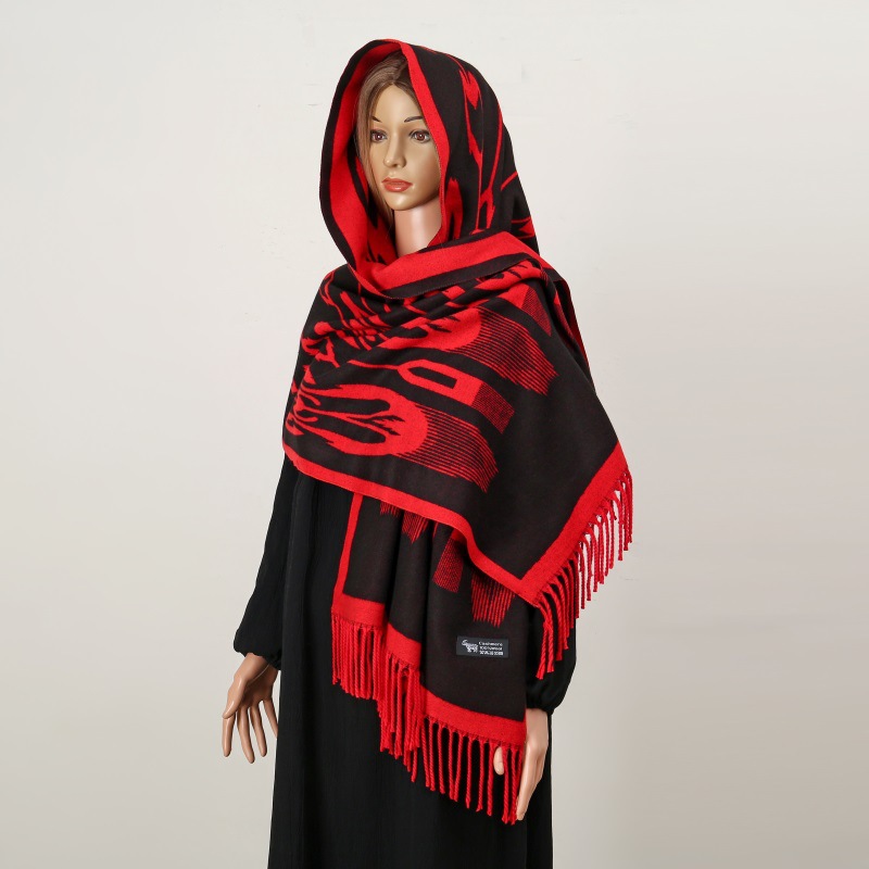 • 신장 에들레즈 요소 숄 검정과 빨강