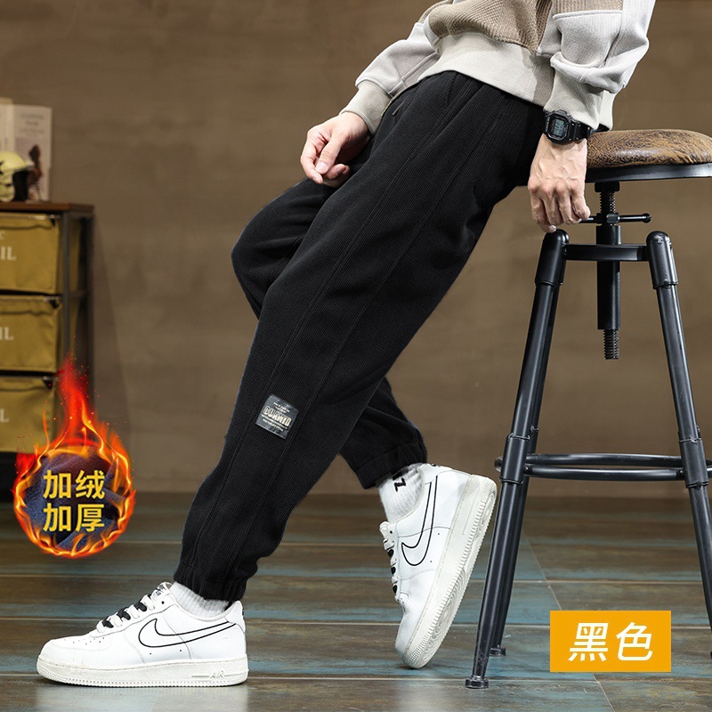 가을과 겨울 기모 두꺼운 바지 남자의 외부 착용 따뜻한 다리 스포츠 캐주얼 바지 느슨한 플러스 사이즈 2024 새로운스토어 가기