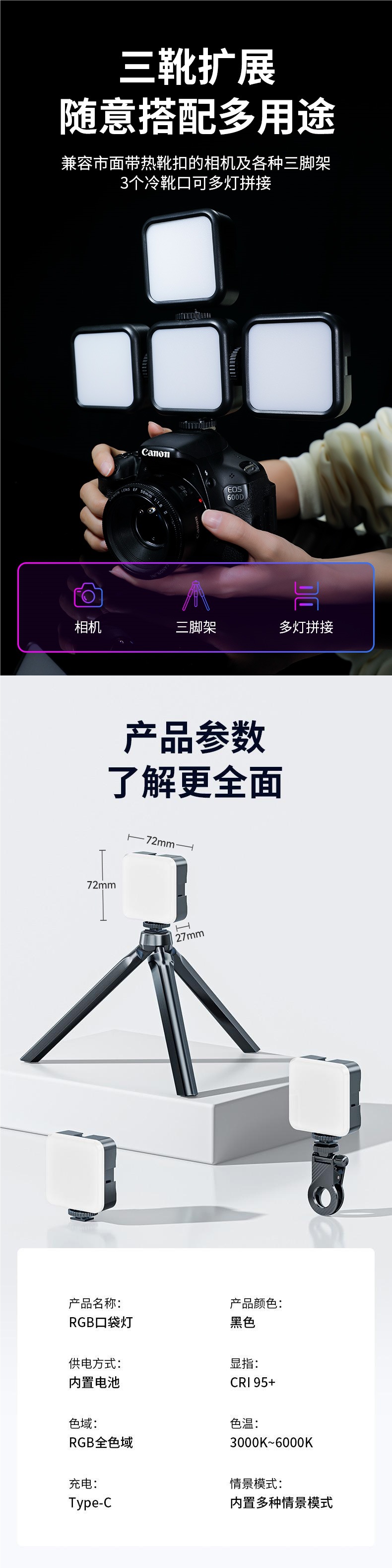 • [RGB 풀컬러 모델] 필라이트 + 데스크탑 삼각대 + 핫슈 + 클립