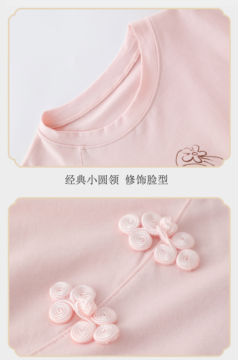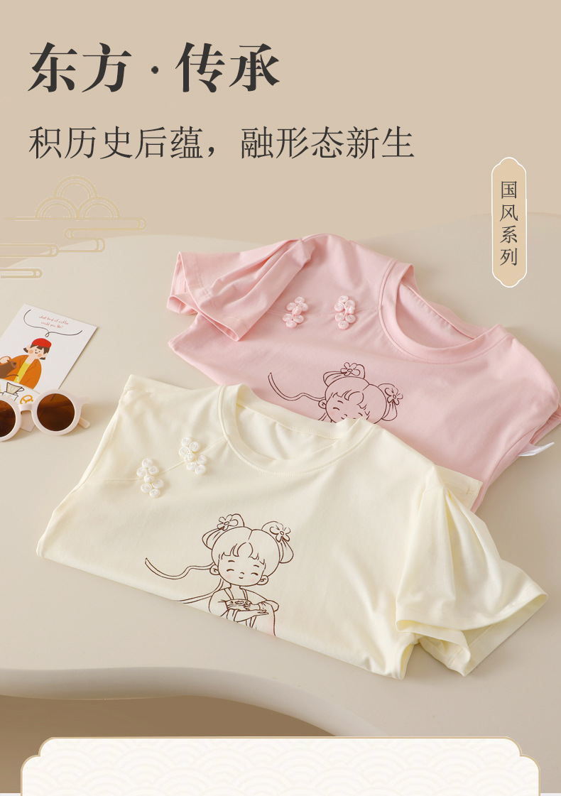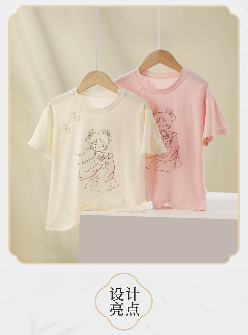 새로운 중국 스타일 소녀 짧은 소매 티셔츠 여름 얇은 Lyocell 큰 어린이 최고 중국 스타일 클래스 A 아동복 도매스토어 가기