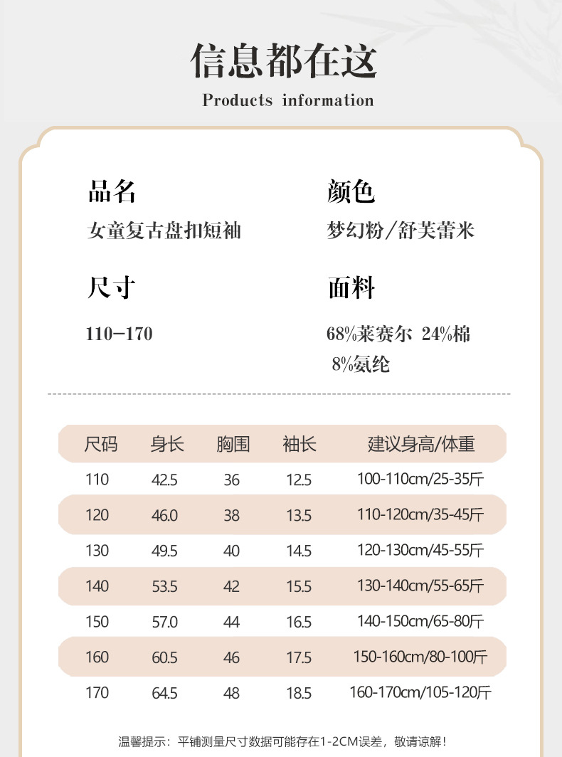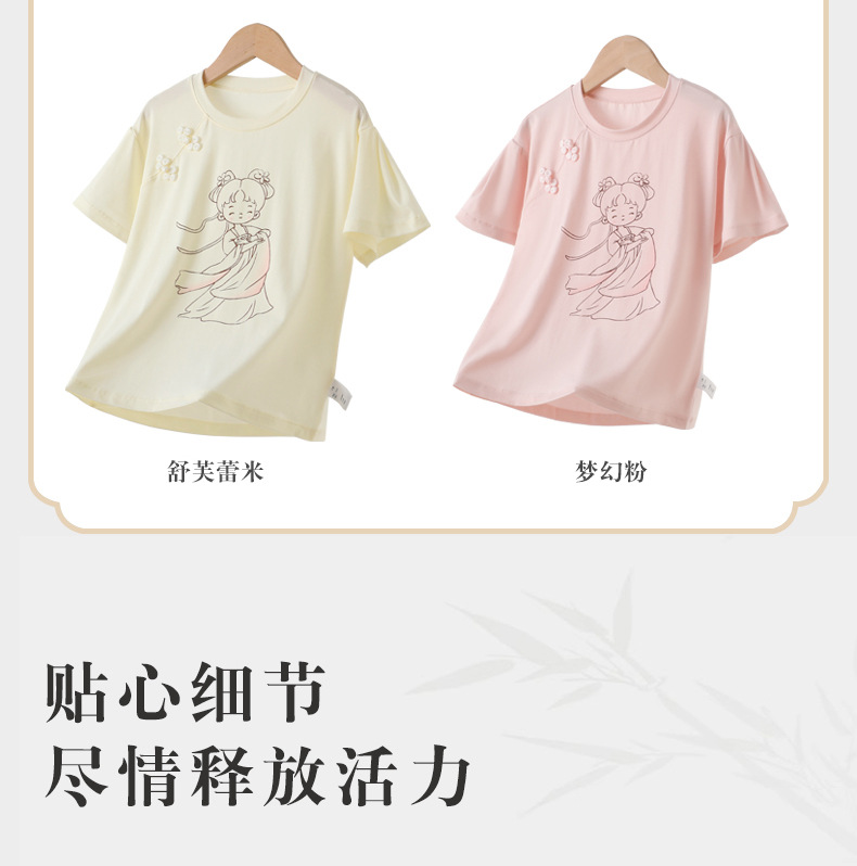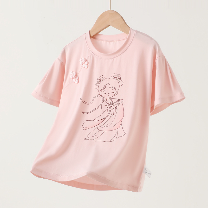 새로운 중국 스타일 소녀 짧은 소매 티셔츠 여름 얇은 Lyocell 큰 어린이 최고 중국 스타일 클래스 A 아동복 도매