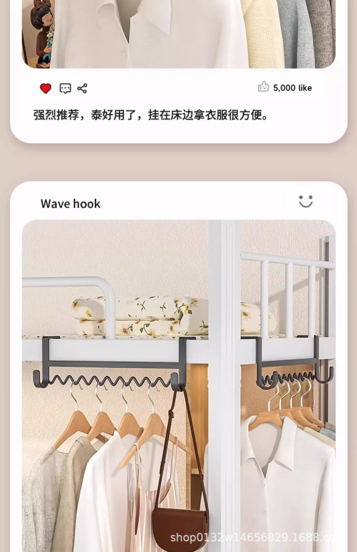 기숙사 좋은 물건 침대 옷걸이 옷 후크 아티팩트 침대 보관 후크 옷걸이 철 침실 상단 화상 옷걸이스토어 가기
