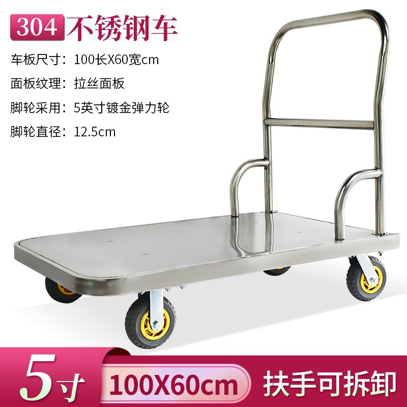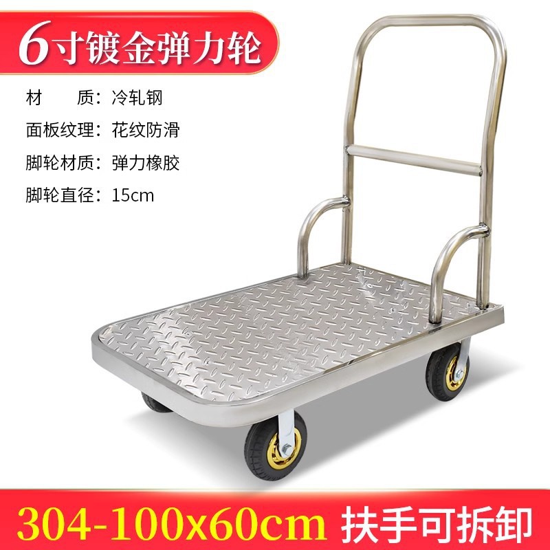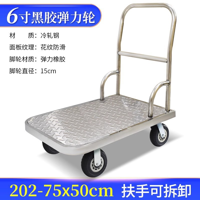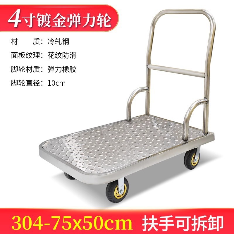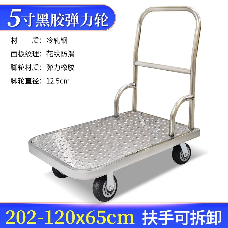두꺼운 스테인레스 강판 트롤리 플랫 트레일러 접이식 트롤리 트럭 슈퍼마켓 트롤리 트럭 가정용 트롤리스토어 가기