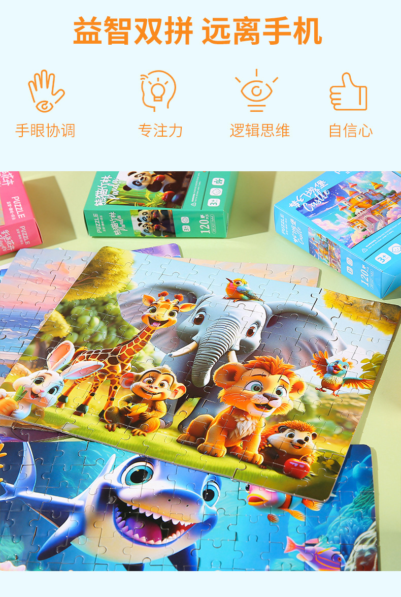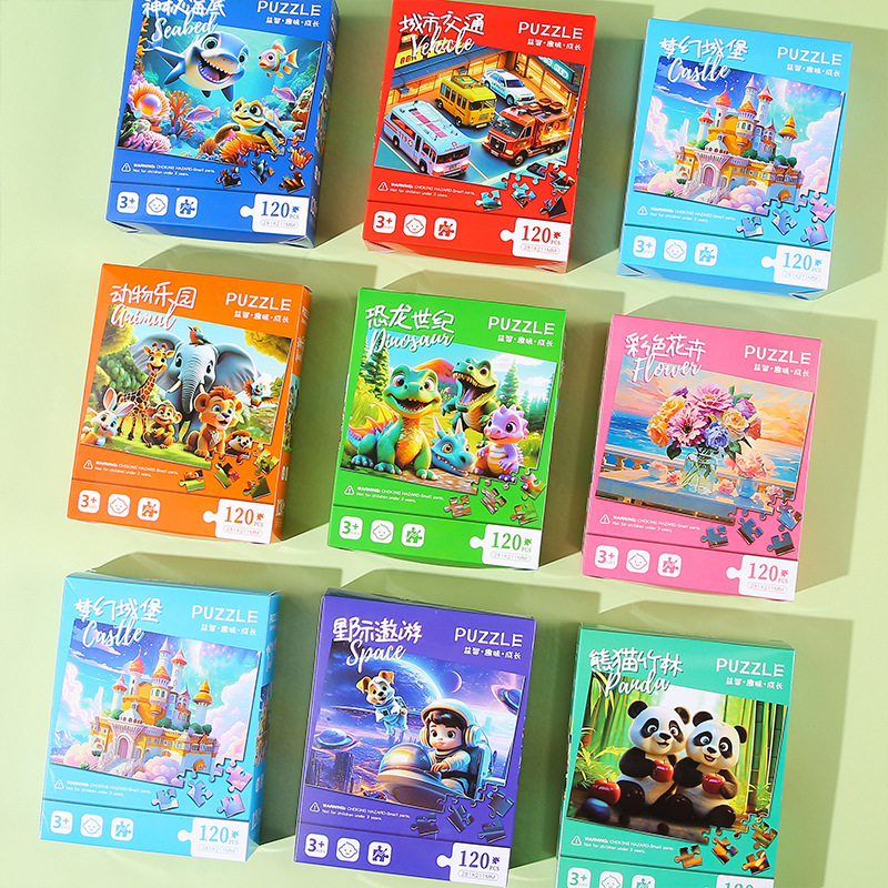 창조적 인 만화 퍼즐 120 조각 어린이 3-6 세 조기 교육 장난감 작은 선물 학생 상 선물스토어 가기