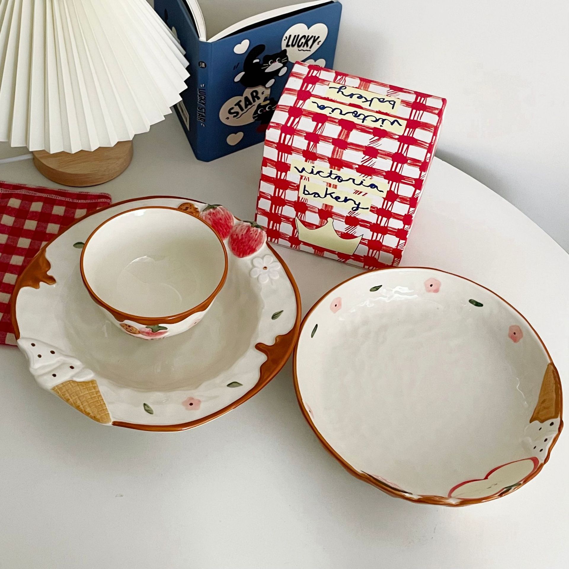 하이 파이 딸기 세라믹 플레이트 높은 가치의 샐러드 플레이트 깊은 수프 플레이트 높은 수준의 아침 식사 플레이트 디저트 플레이트 식기스토어 가기