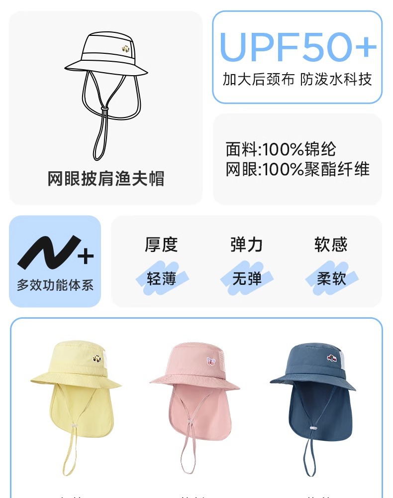 니도베어 2025 아기 모자 선 스크린 모자 아기 메쉬 어부 모자 통기성 남녀 어린이 목도리 모자 여름스토어 가기