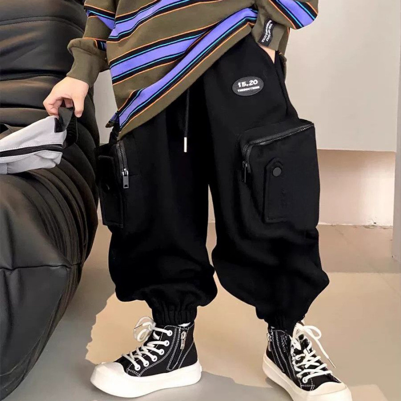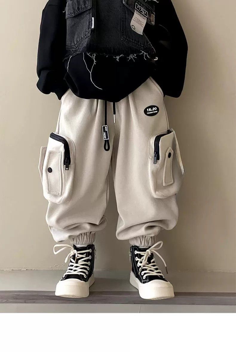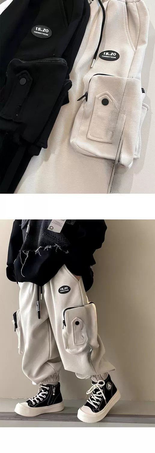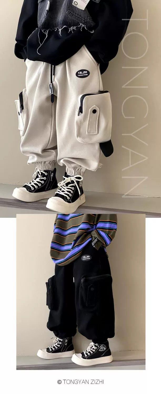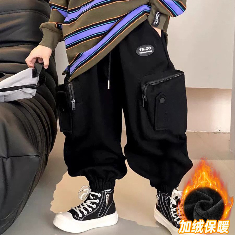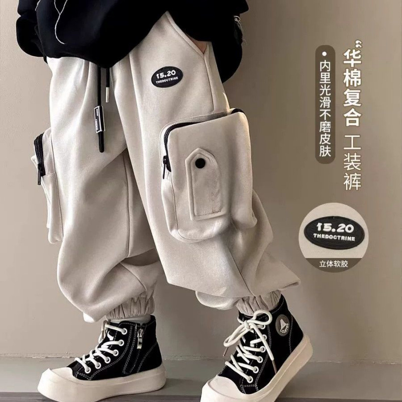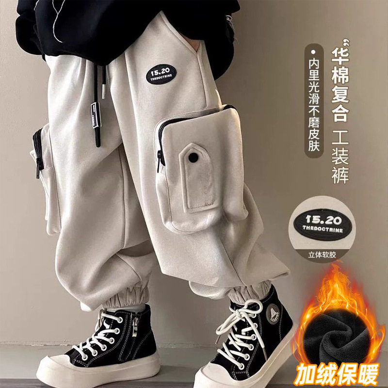 소년 양털 핏 바지 봄 가을 겨울 어린이 스포츠 바지 2025 새로운 캐주얼 중 · 대형 어린이 느슨한 작업복 바지스토어 가기