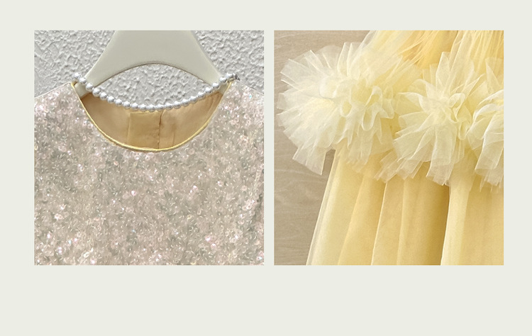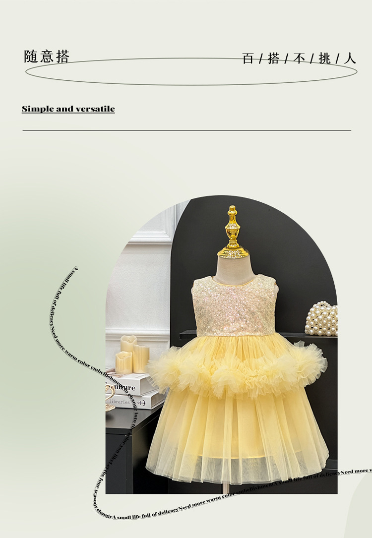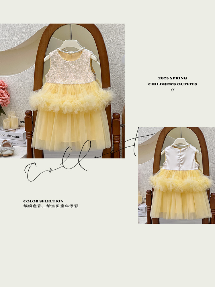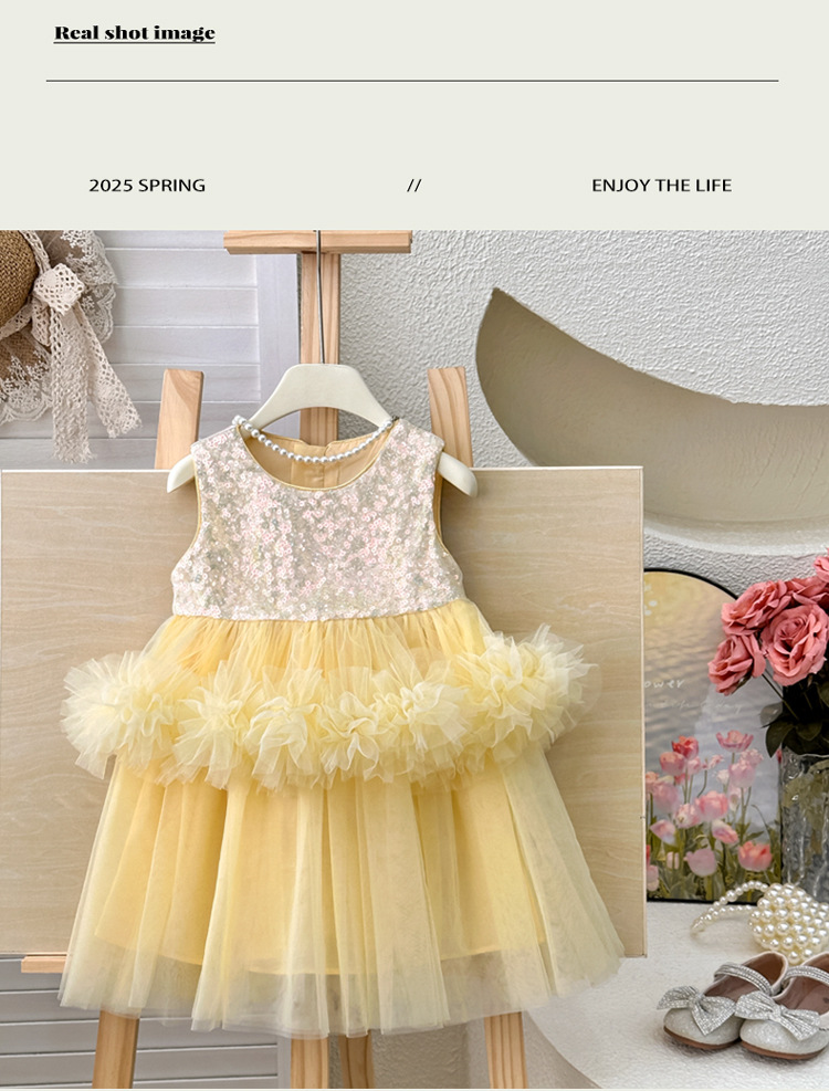 【즉시 배송】여아 드레스 2025 신상 한국 스타일 세련된 어린이 망사 공주 드레스 민소매 망사 드레스
