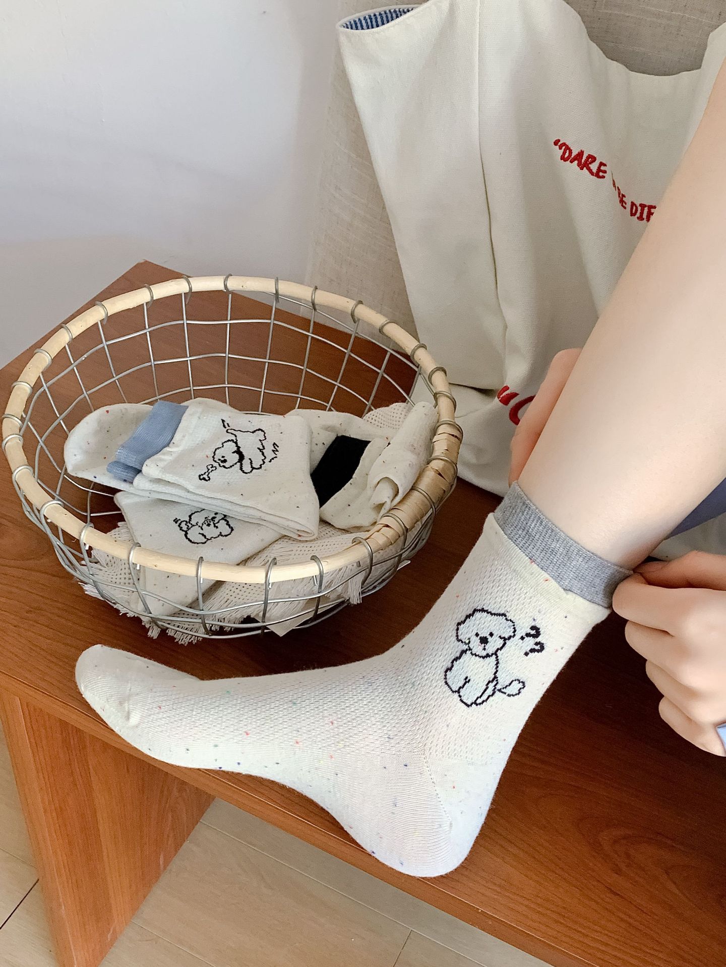 코튼 양말 여성의 봄과 여름 자카드 만화 강아지 포인트 원사 컬러 라쿠 달콤한 올매치 귀여운 미드 튜브 양말 여성용 양말스토어 가기
