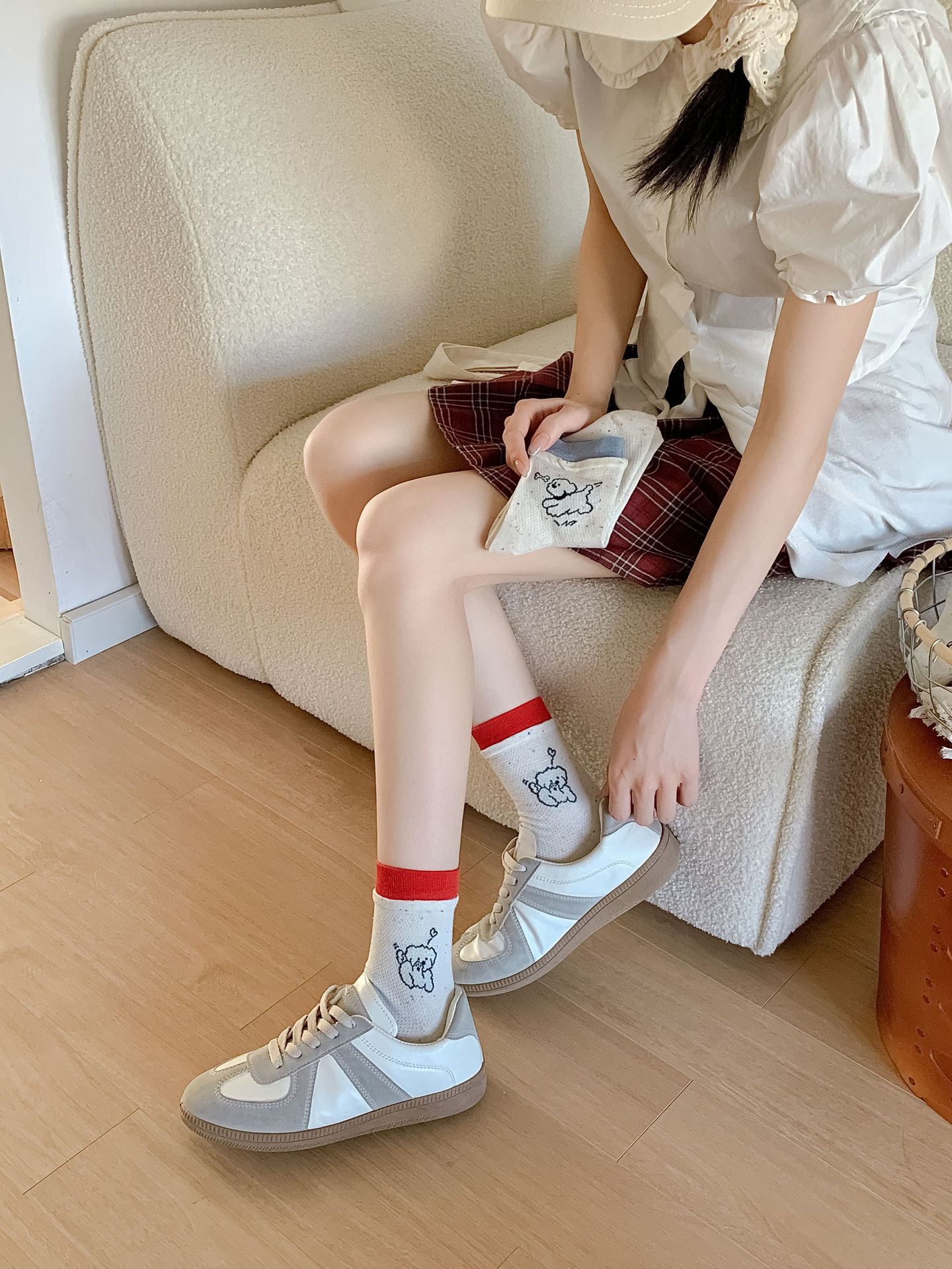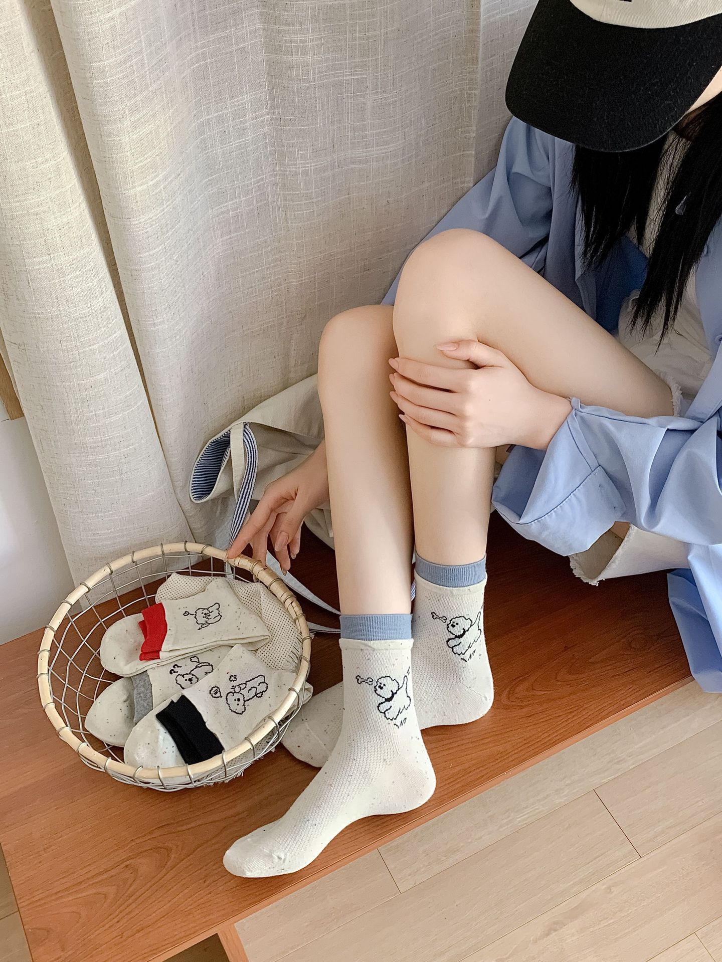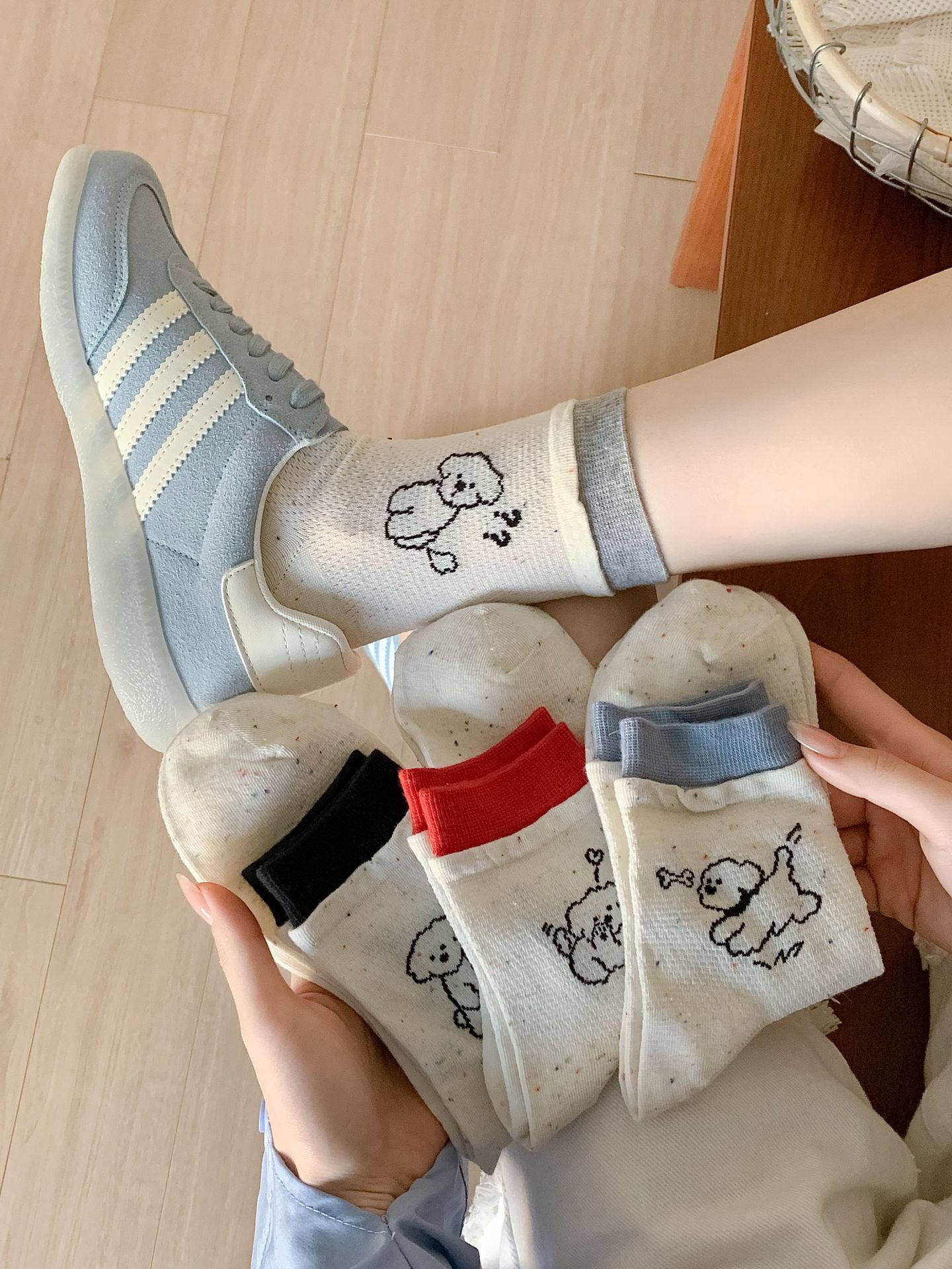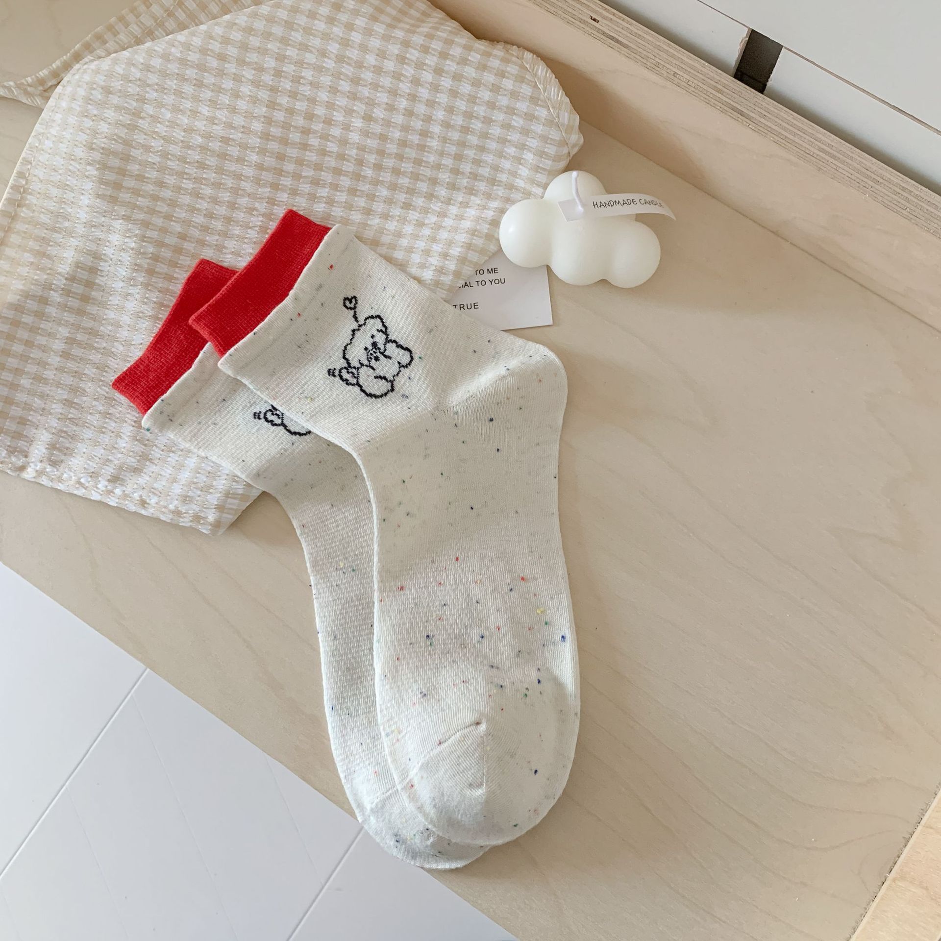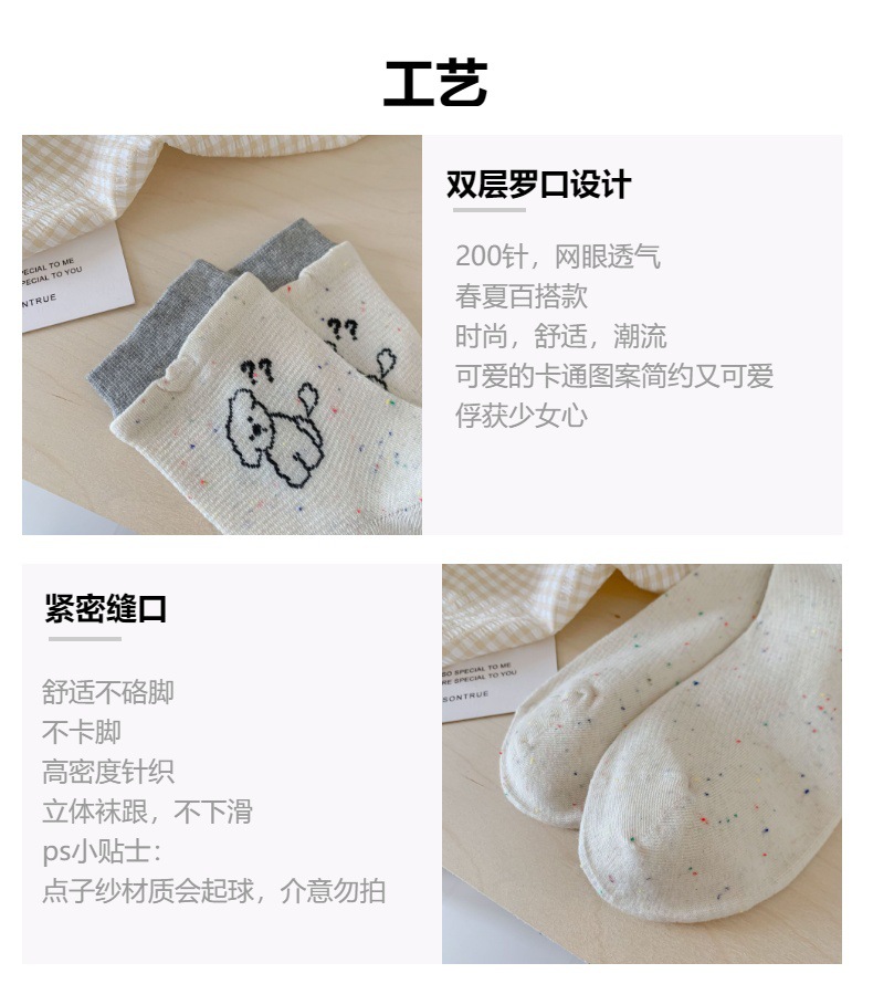 코튼 양말 여성의 봄과 여름 자카드 만화 강아지 포인트 원사 컬러 라쿠 달콤한 올매치 귀여운 미드 튜브 양말 여성용 양말
