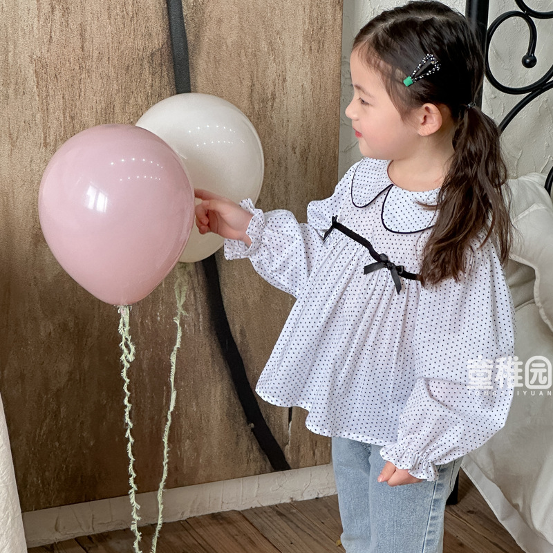 소녀들의 봄과 가을 새로운 달콤한 도트 셔츠 탑 어린이 인형 셔츠 한국 스타일 아동복 풀오버 티셔츠 트렌디