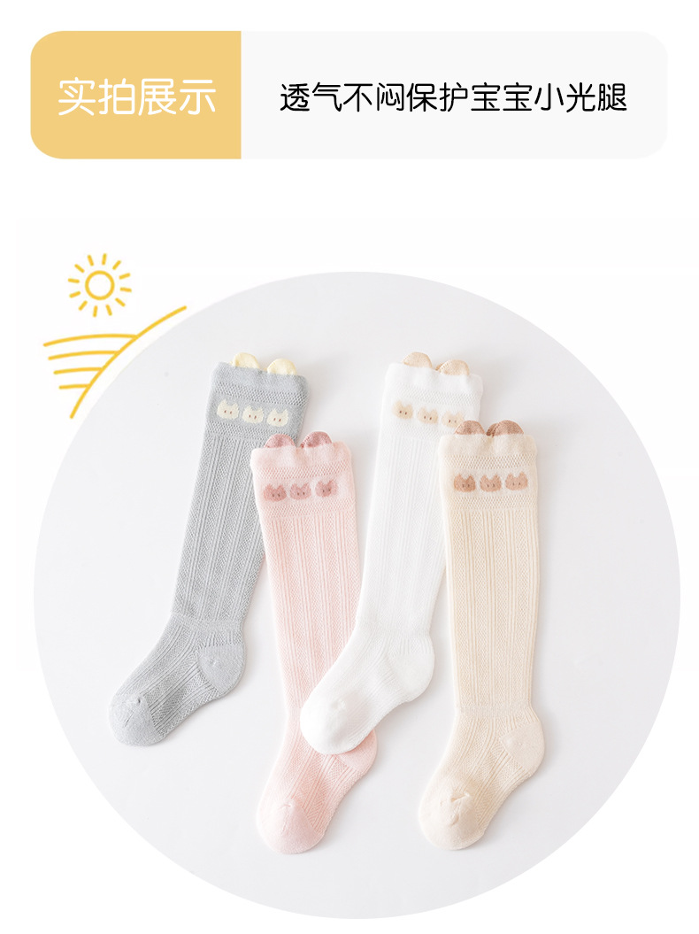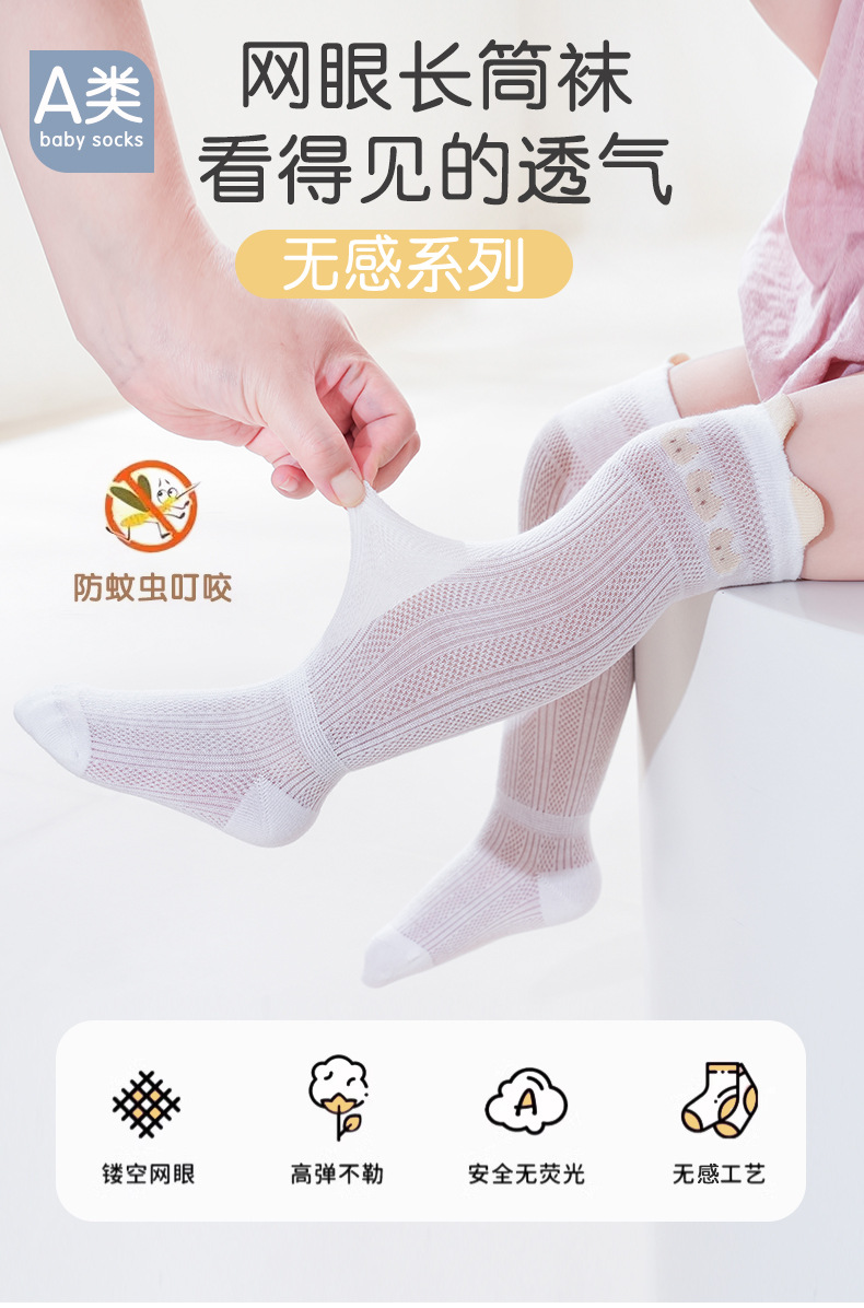 Xiyujia 봄과 여름 메쉬 아기 모기 양말 면화 통기성 경량 만화 귀여운 아기 무릎 양말스토어 가기