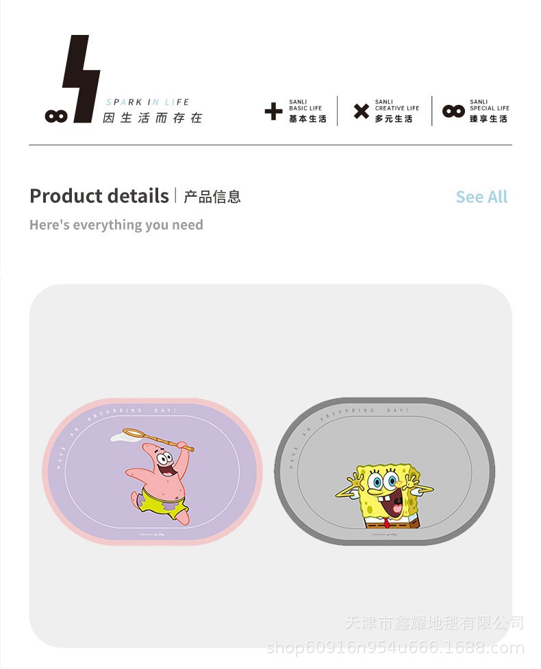 스폰지 밥 흡수성 바닥 매트 가정용 주방 침실 욕실 도어 내마모성이 쉬운 Diatom 진흙 부드러운 발 매트스토어 가기