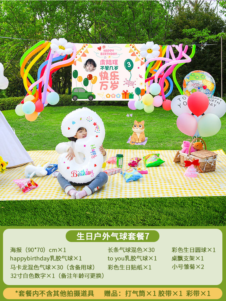 야외 생일 파티 풍선 장면 레이아웃 소년 소녀 피크닉 장식 헝겊 어린이 나이 사진 소품스토어 가기