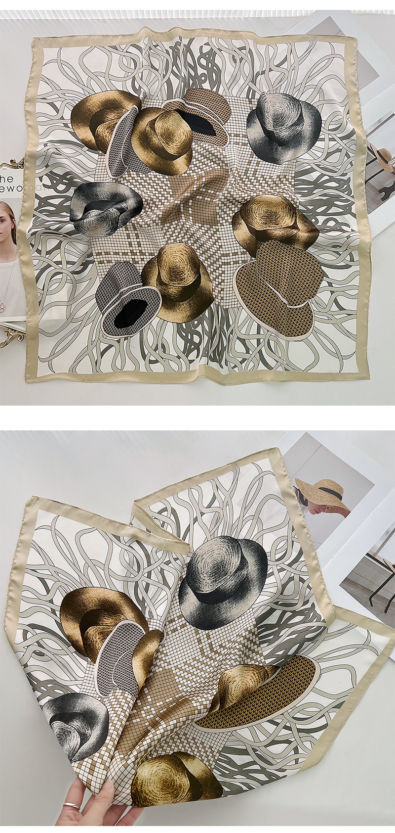 2025 봄과 여름 새로운 70CM 스퀘어 스카프 패션 실크 스카프 간단한 경량 목 보호 장식 타이 백 스카프