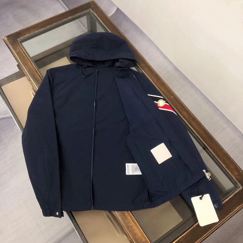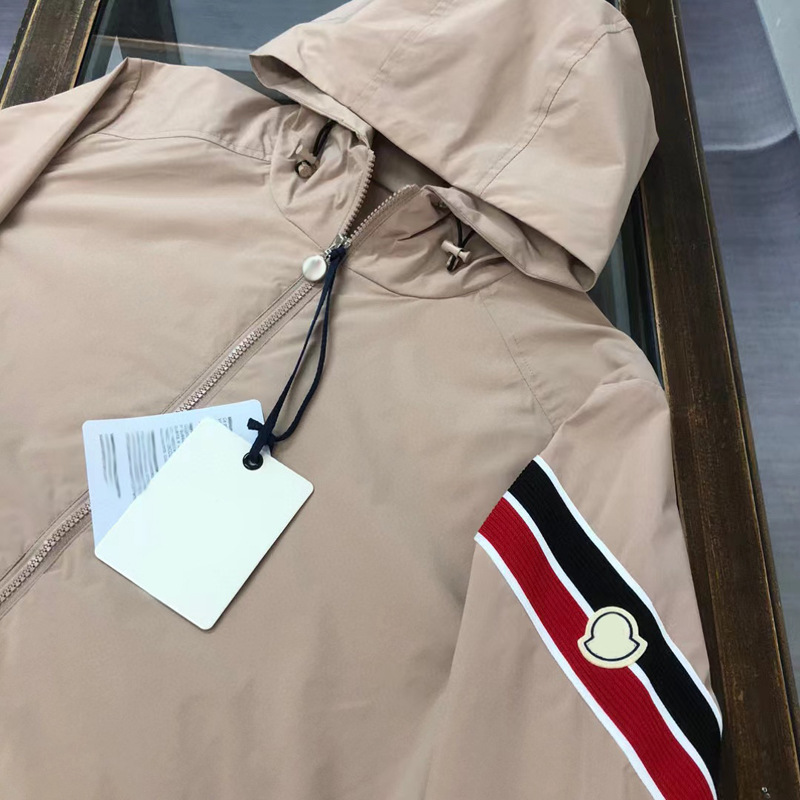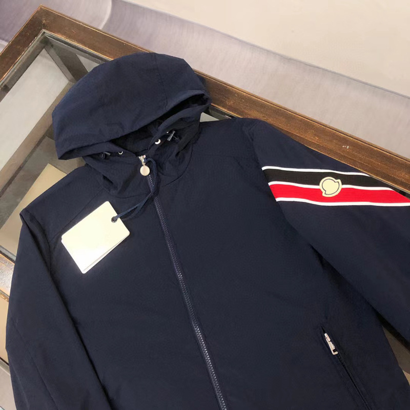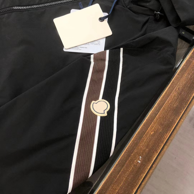 2025 봄과 여름 후드 코트 재킷 남성용 트렌디 브랜드 얇은 핸드 슬리브 스트라이프 마이크로 표준 캐주얼 스포츠 재킷스토어 가기