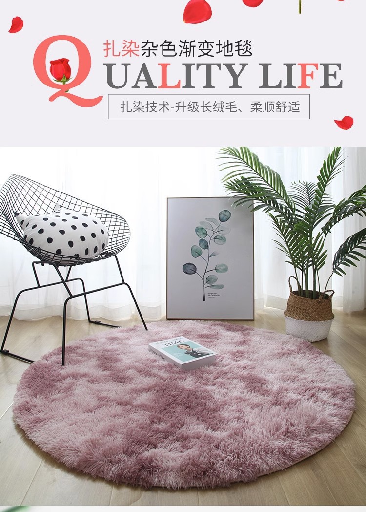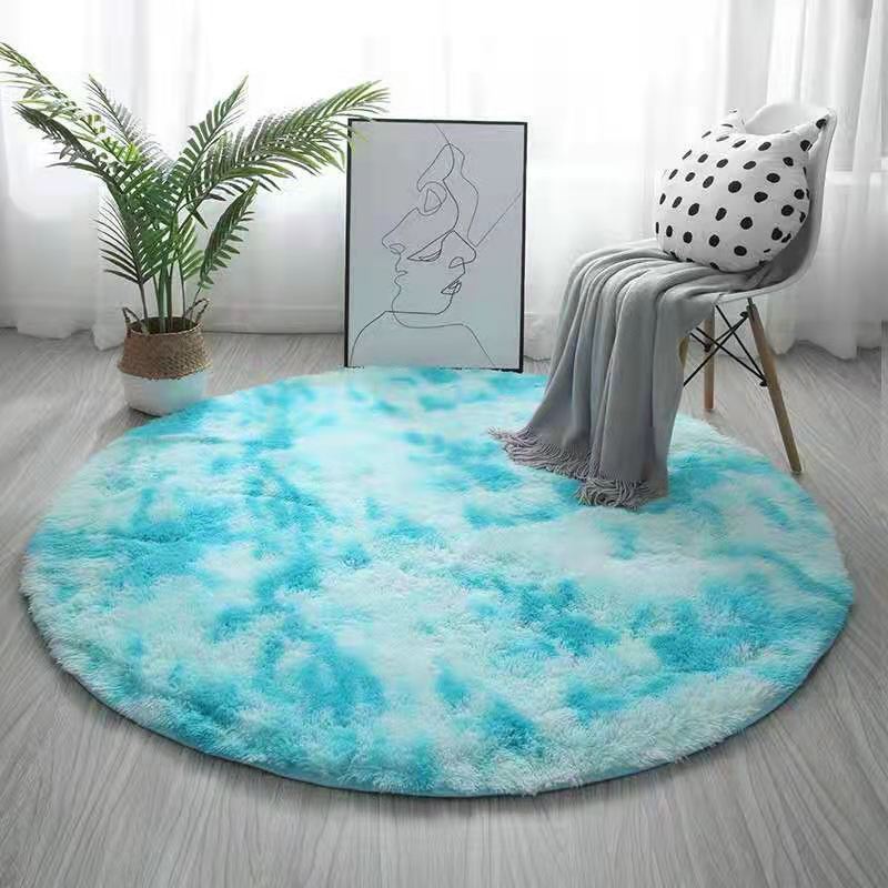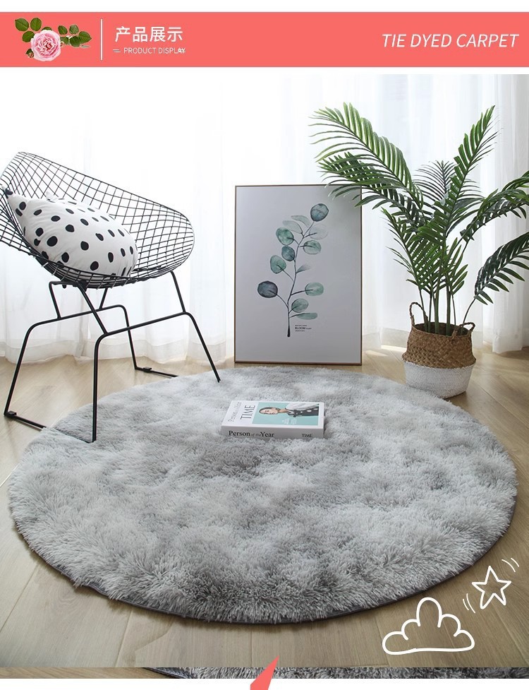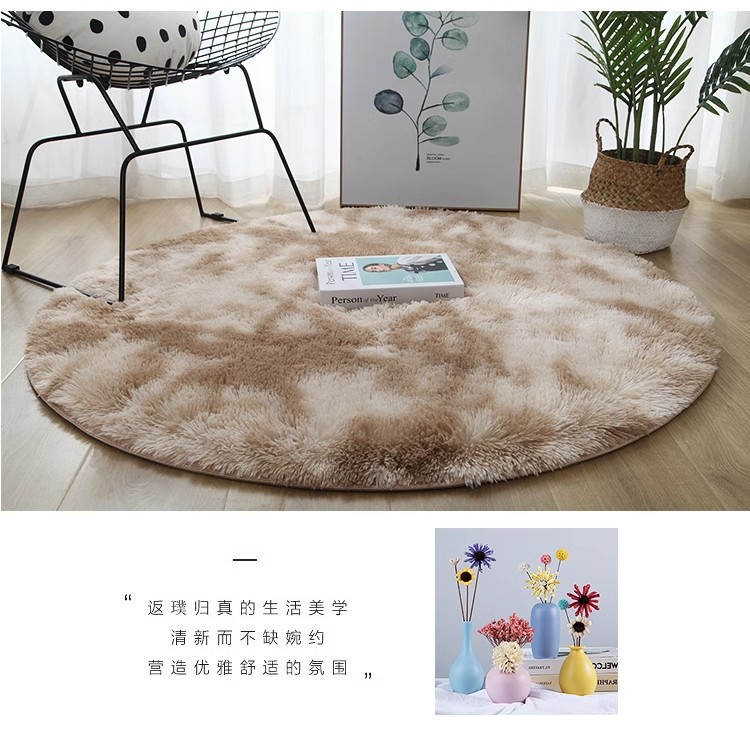 북유럽 라운드 실크 울 카펫 거실 넥타이 염색 피부 친화적 인 커피 테이블 매트 소파 담요 침실 침실 담요 발코니 요람 매트스토어 가기