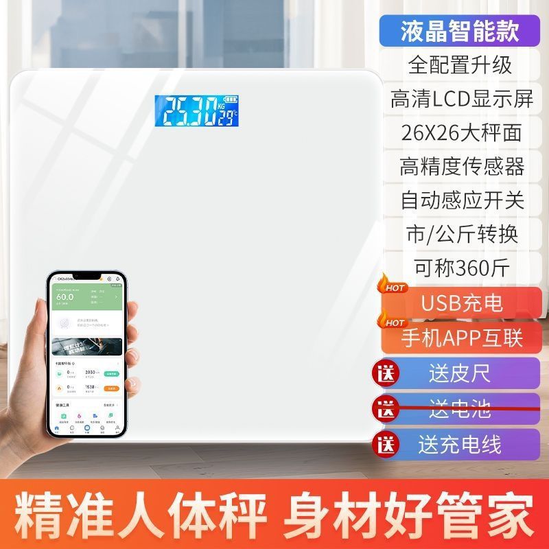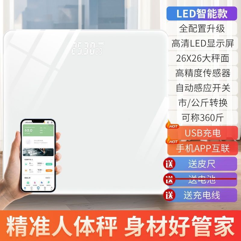 무게 규모 전자 규모 가정용 정밀 및 내구성 충전식 바디 스케일 소녀의 작은 스마트 바디 팻 스케일스토어 가기