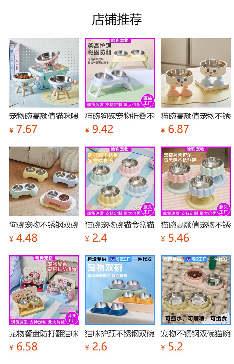 고양이 그릇 안티 노크 애완 동물 대용량 스테인레스 스틸 먹이 분지 고양이 높은 발 그릇 목 보호 큰 직경 애완 동물 그릇스토어 가기