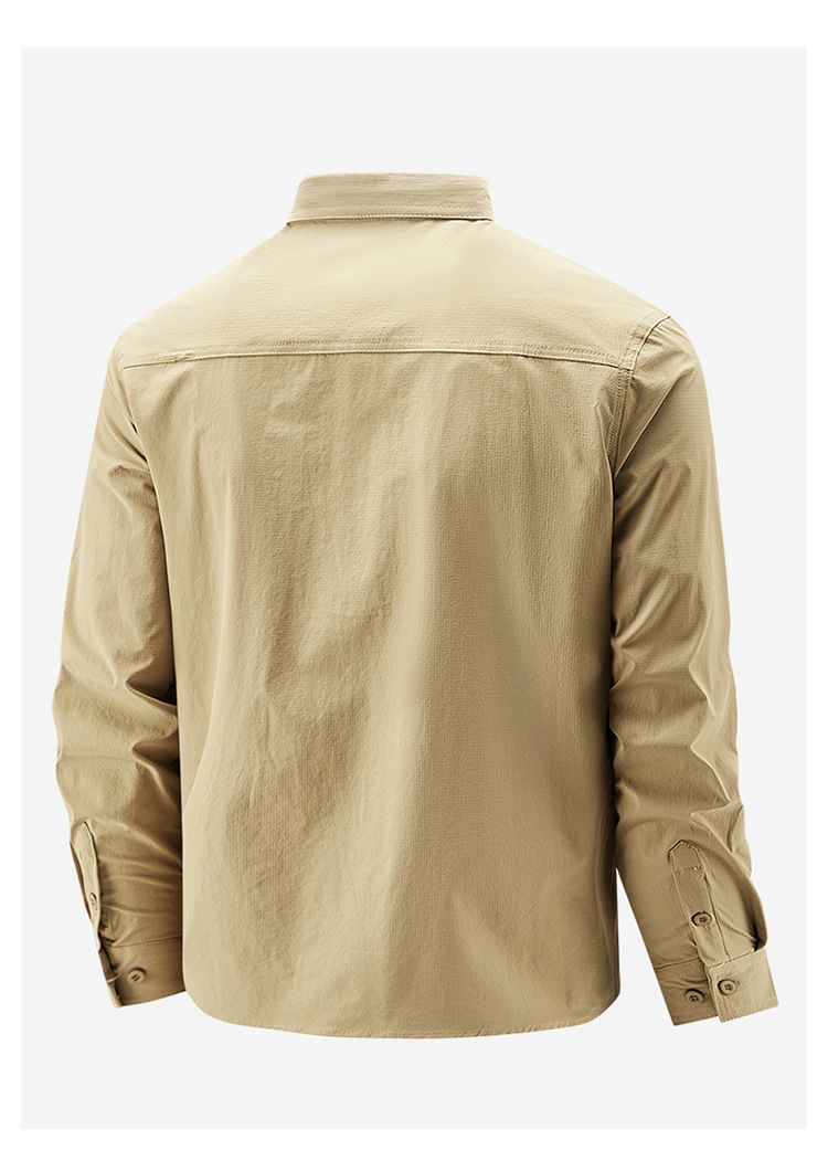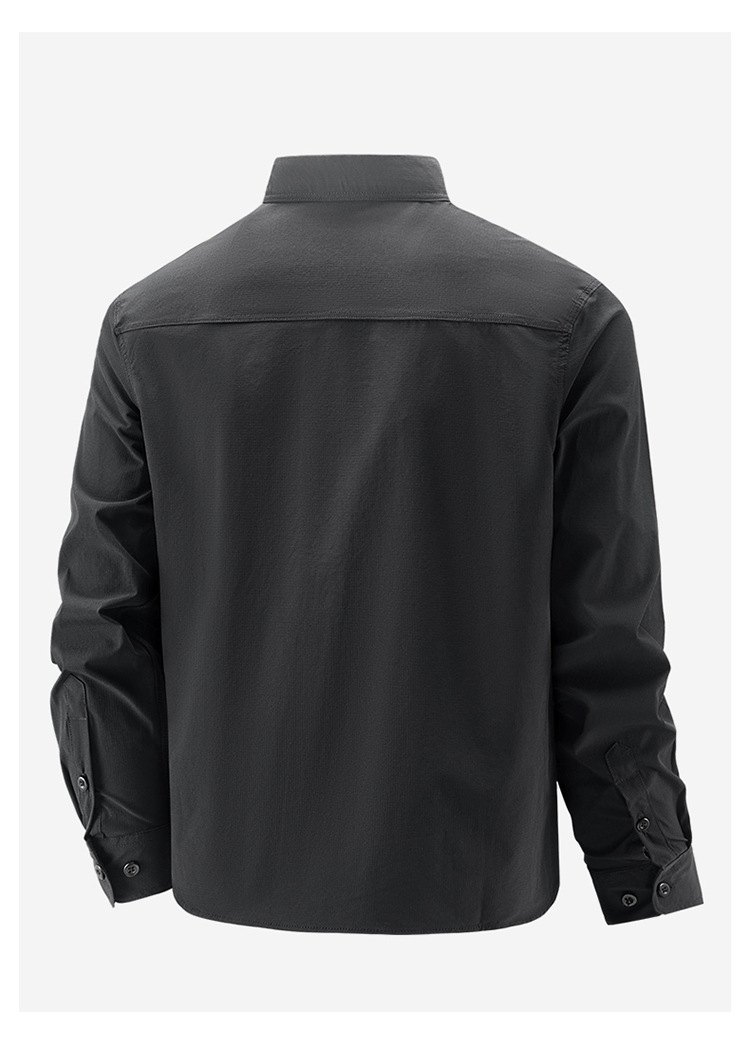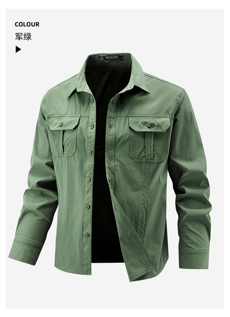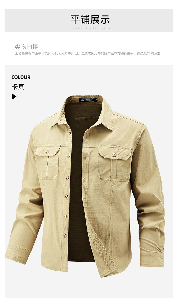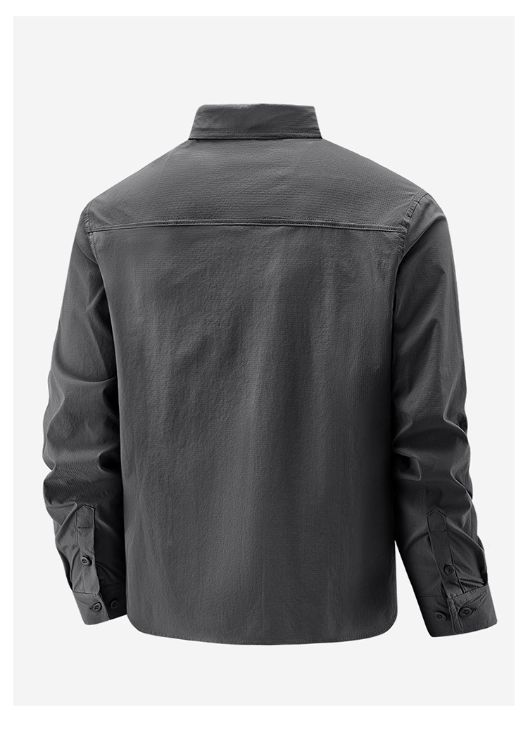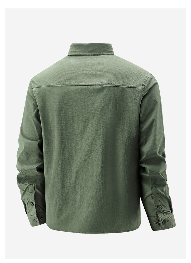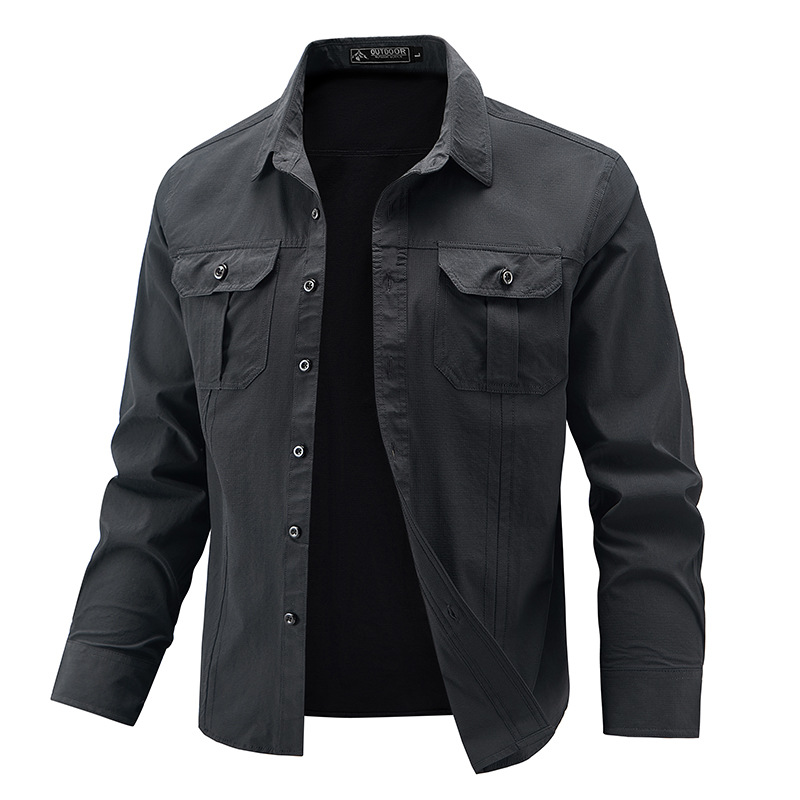 2025 봄, 가을 새로운 긴팔 셔츠 남성 캐주얼 멀티 포켓 고탄성 편안한 대형 솔리드 컬러 워크 셔츠 남성용