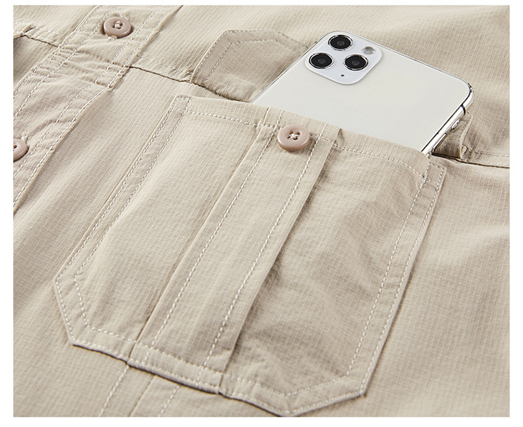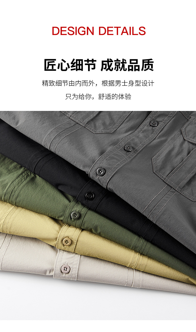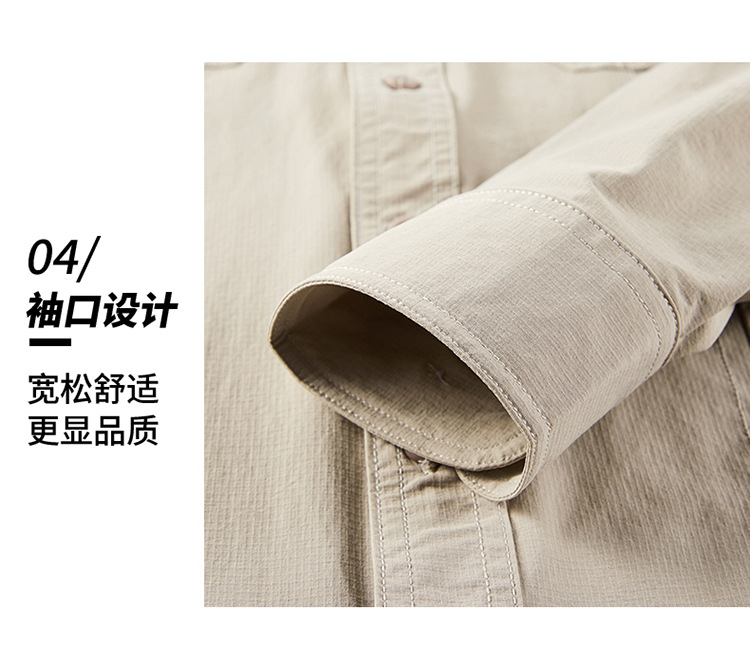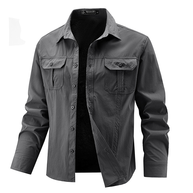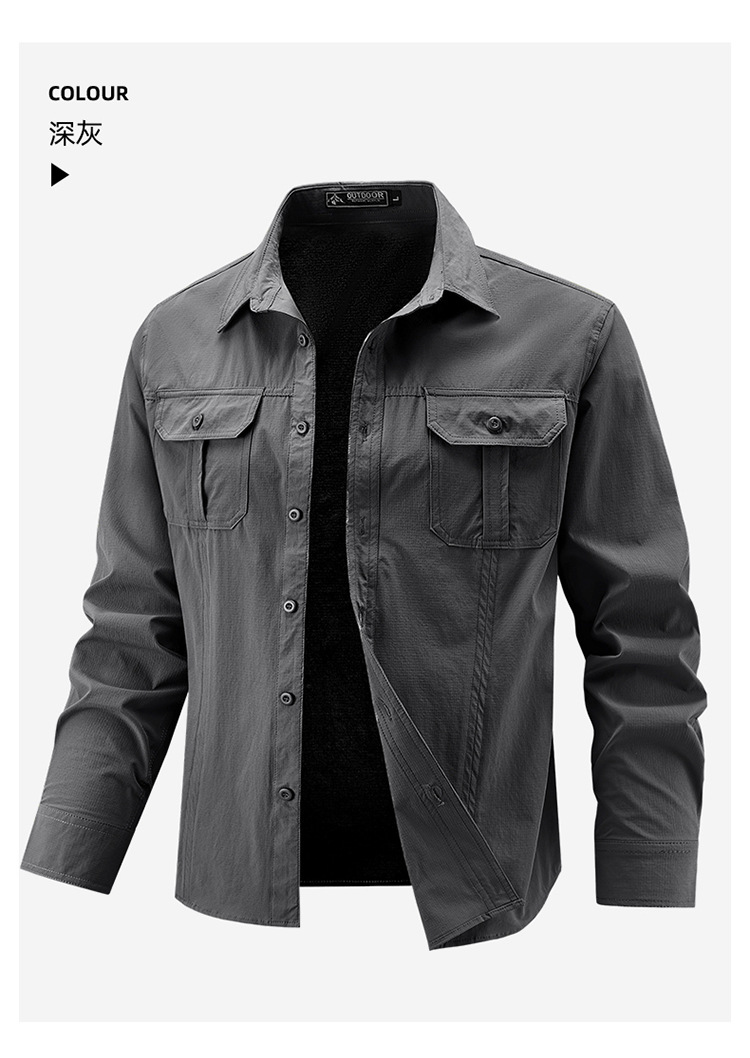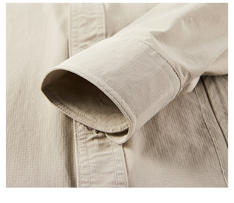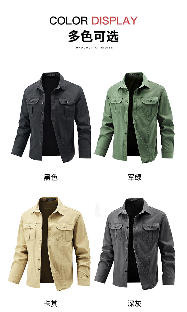 2025 봄, 가을 새로운 긴팔 셔츠 남성 캐주얼 멀티 포켓 고탄성 편안한 대형 솔리드 컬러 워크 셔츠 남성용