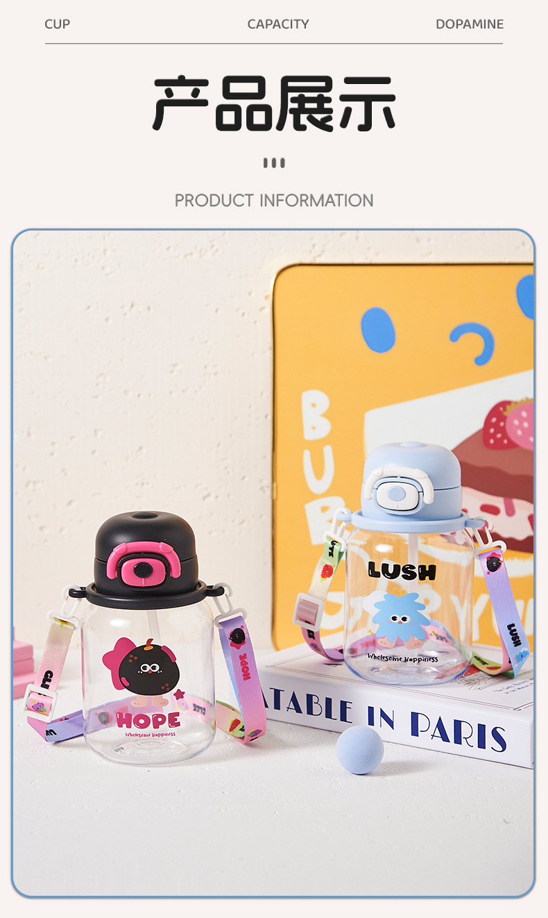 퍼싱 어린이 귀여운 워터 컵 만화 주전자 야외 크로스 오버 흡입 튜브 컵 여름 학생 휴대용 폭탄 뚜껑 스페이스 컵