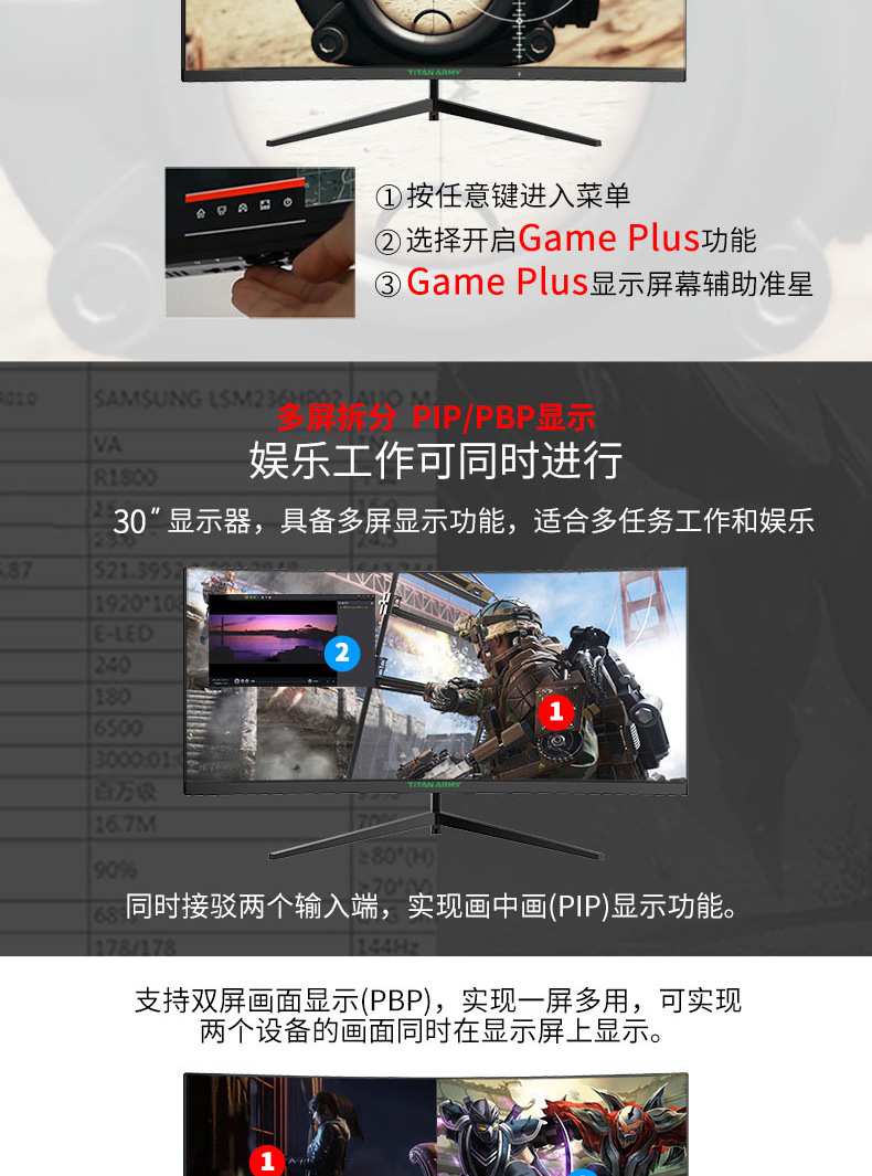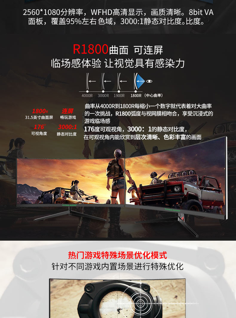 타이탄 군단 C30SK PRO 2k 헤어 테일 스크린 200Hz 지능형 분할 화면 곡선 표면 전기 경쟁 디스플레이 29.5 인치