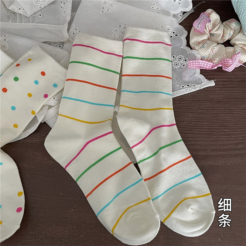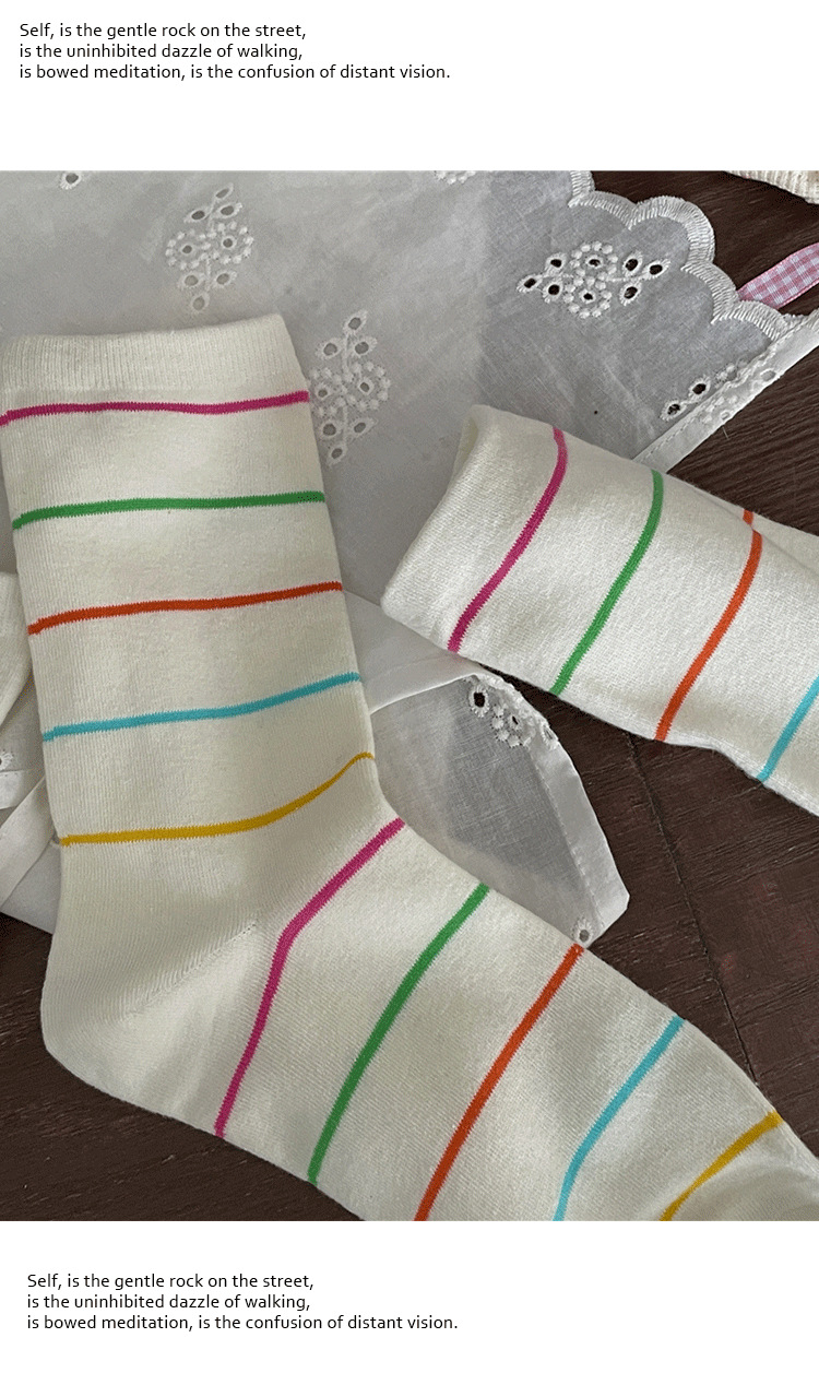 Maillard 빈티지 줄무늬 양말 여성 봄과 여름 코튼 중간 길이 양말 Ins 트렌디 한 일본 스타일 스타킹 스타킹 면화 양말