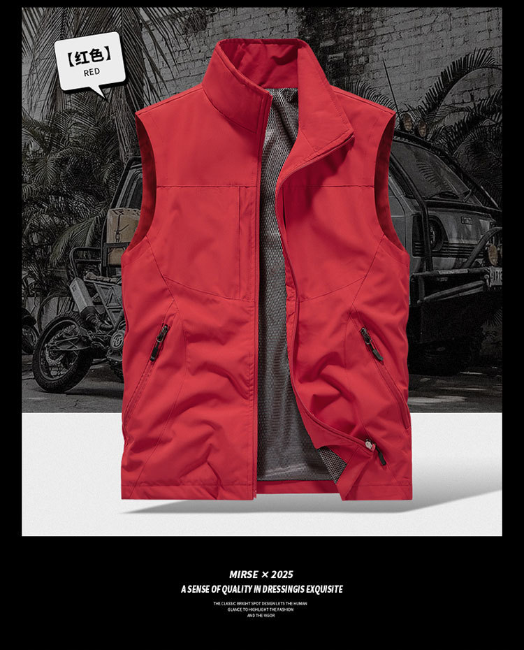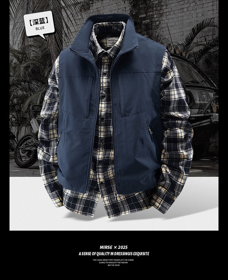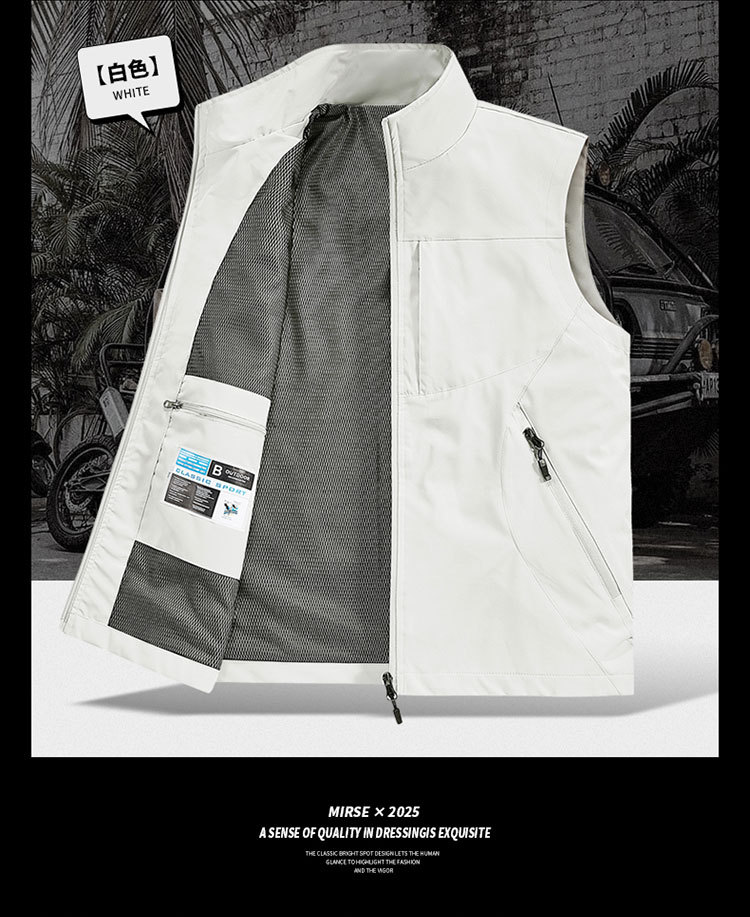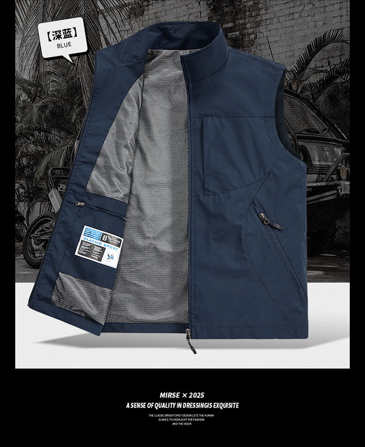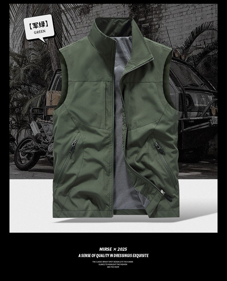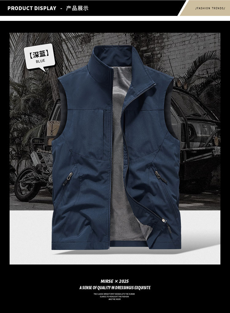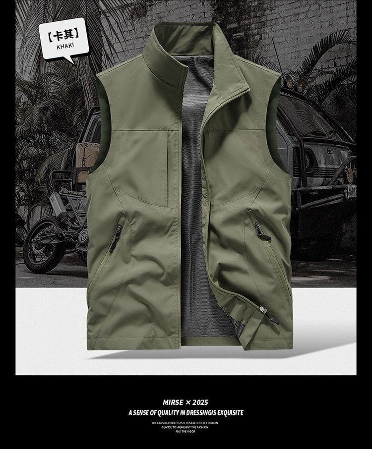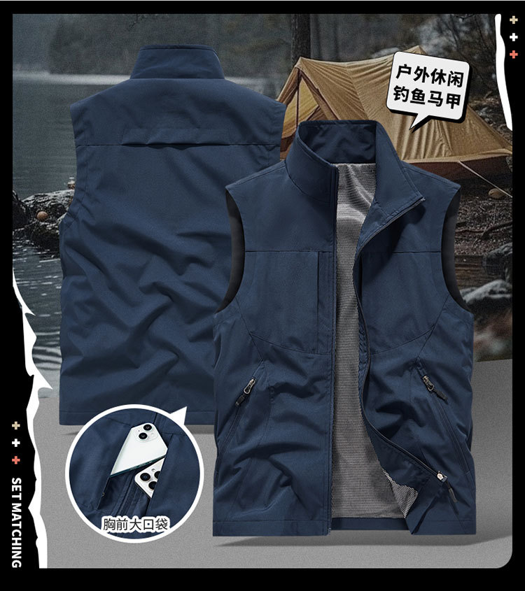 국경 간 도매 조끼 남성 캐주얼 스탠드 칼라 야외 조끼 양복 조끼 중년 남성 낚시 조끼는 로고를 인쇄 할 수 있습니다.스토어 가기