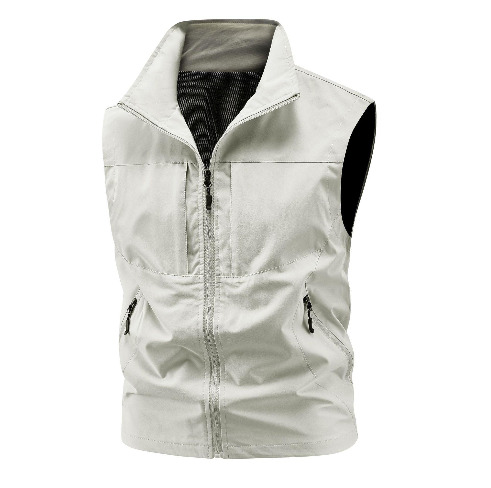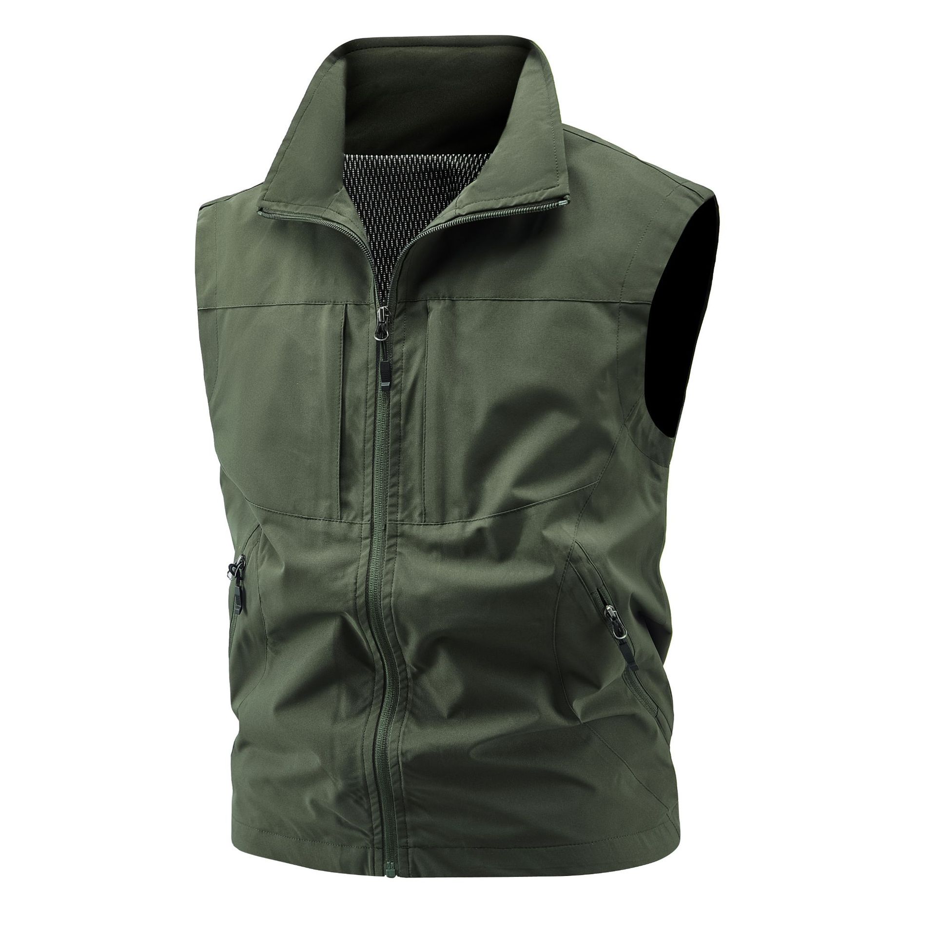 국경 간 도매 조끼 남성 캐주얼 스탠드 칼라 야외 조끼 양복 조끼 중년 남성 낚시 조끼는 로고를 인쇄 할 수 있습니다.
