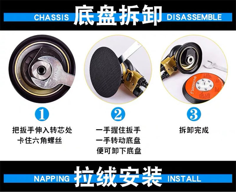 대만 Pnlmo Pullima 5 인치 연마 기계 디스크 사포 기계 공압 샌더 자동차 산업 등급 에어 밀스토어 가기
