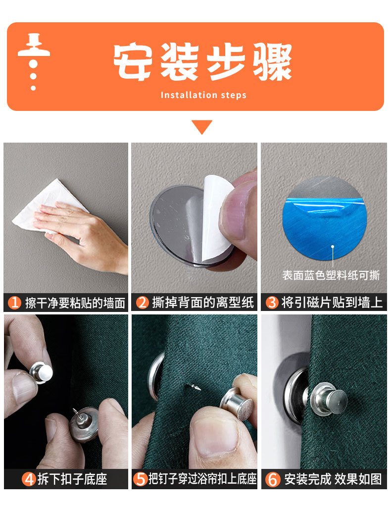 샤워 커튼 마그네틱 버클 안티 워터 누설 버클 욕실 안티 라이트 누설 버클 안티 플로팅 버클 갭 벽 고정 유물스토어 가기