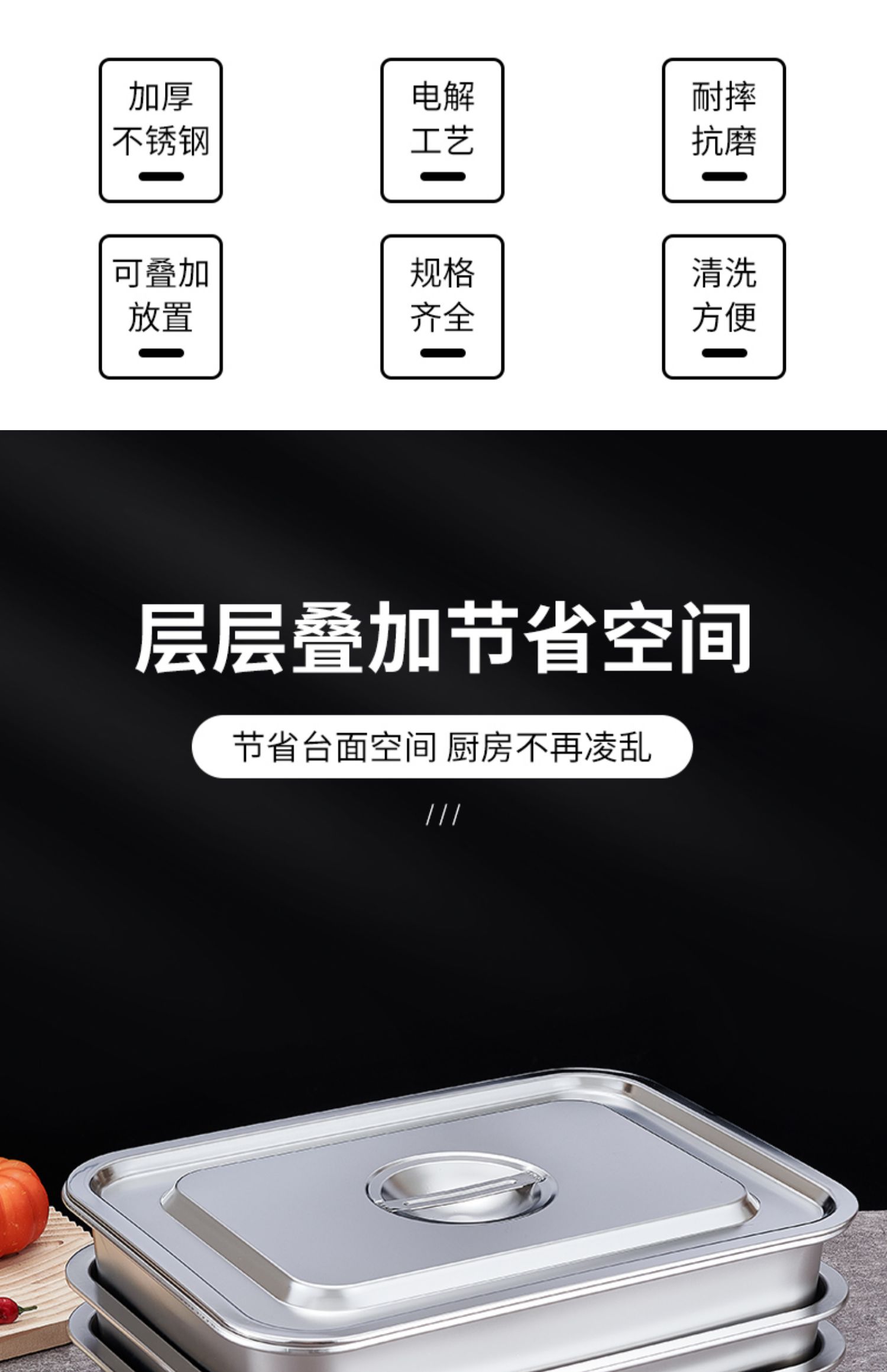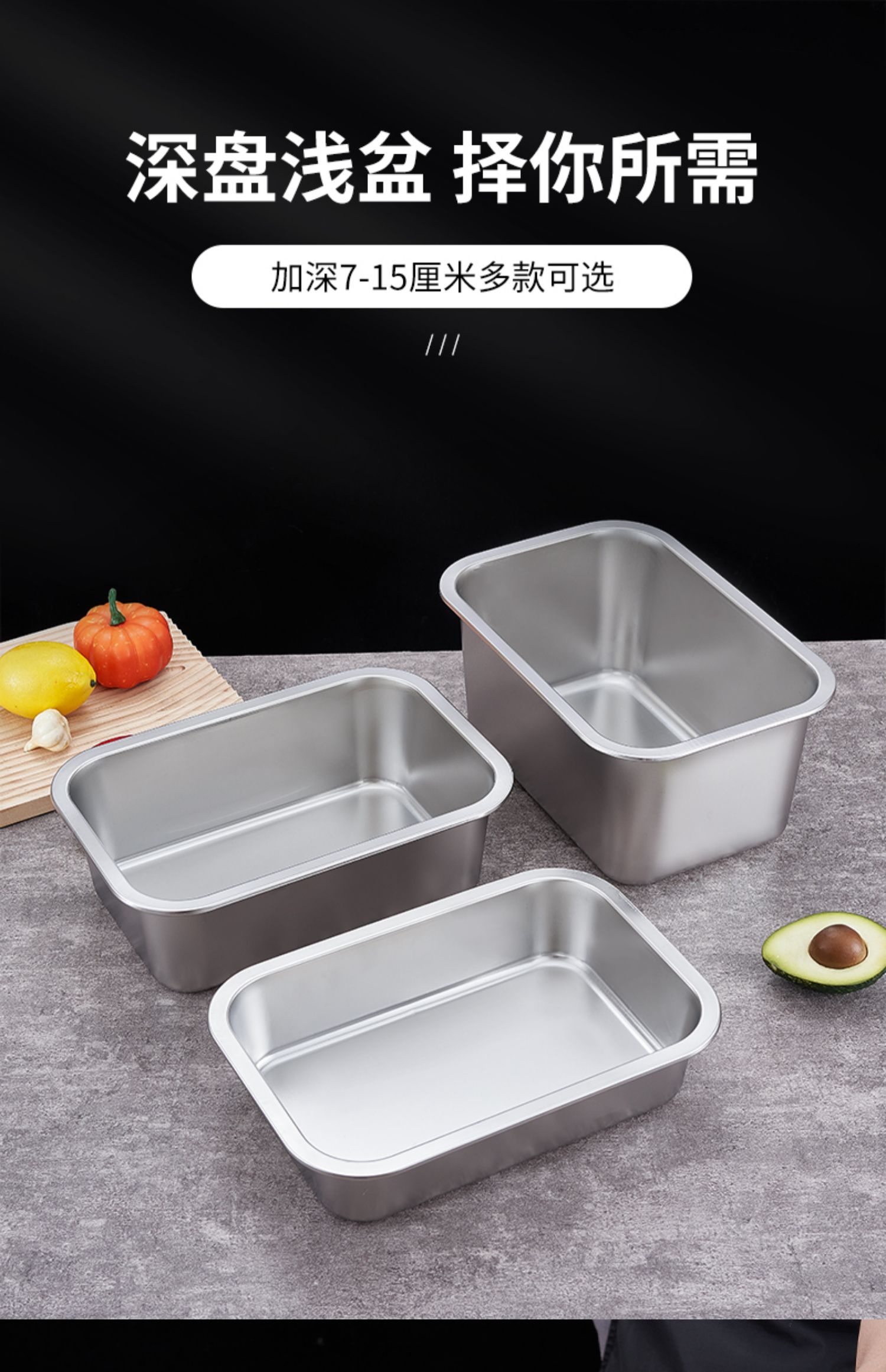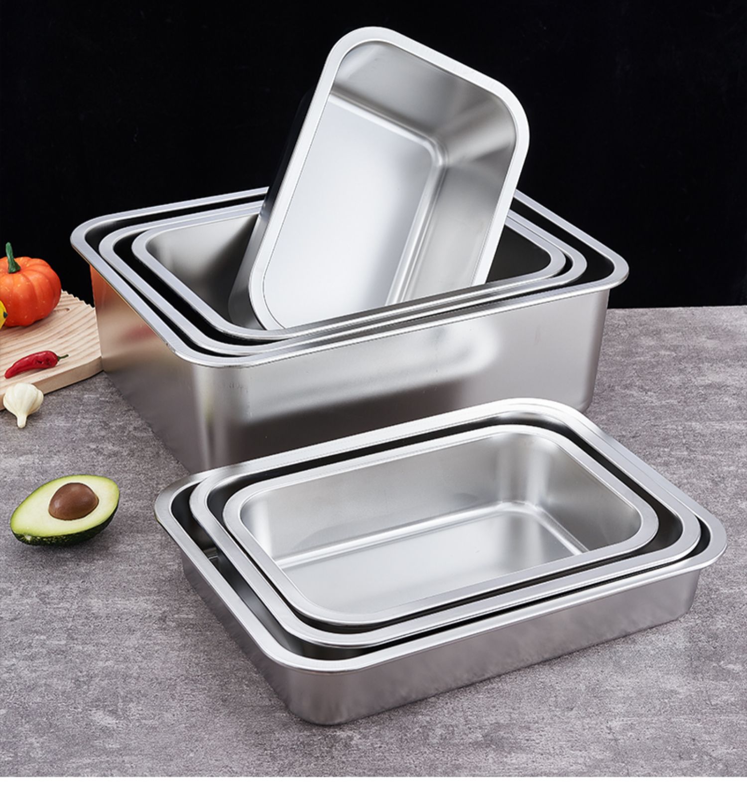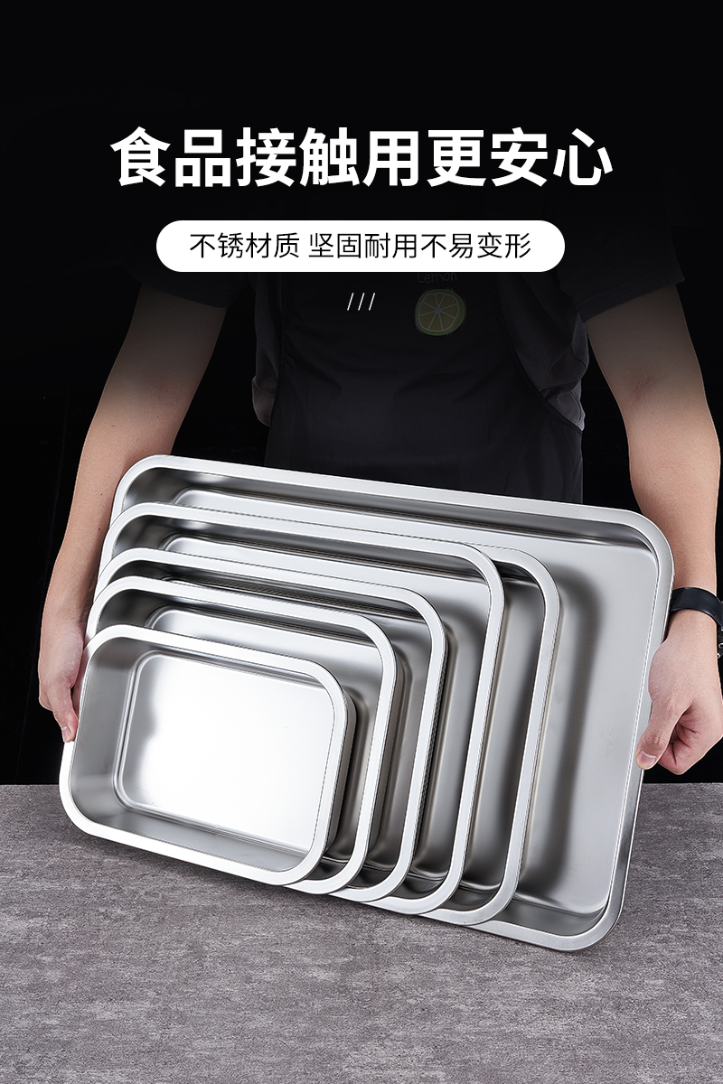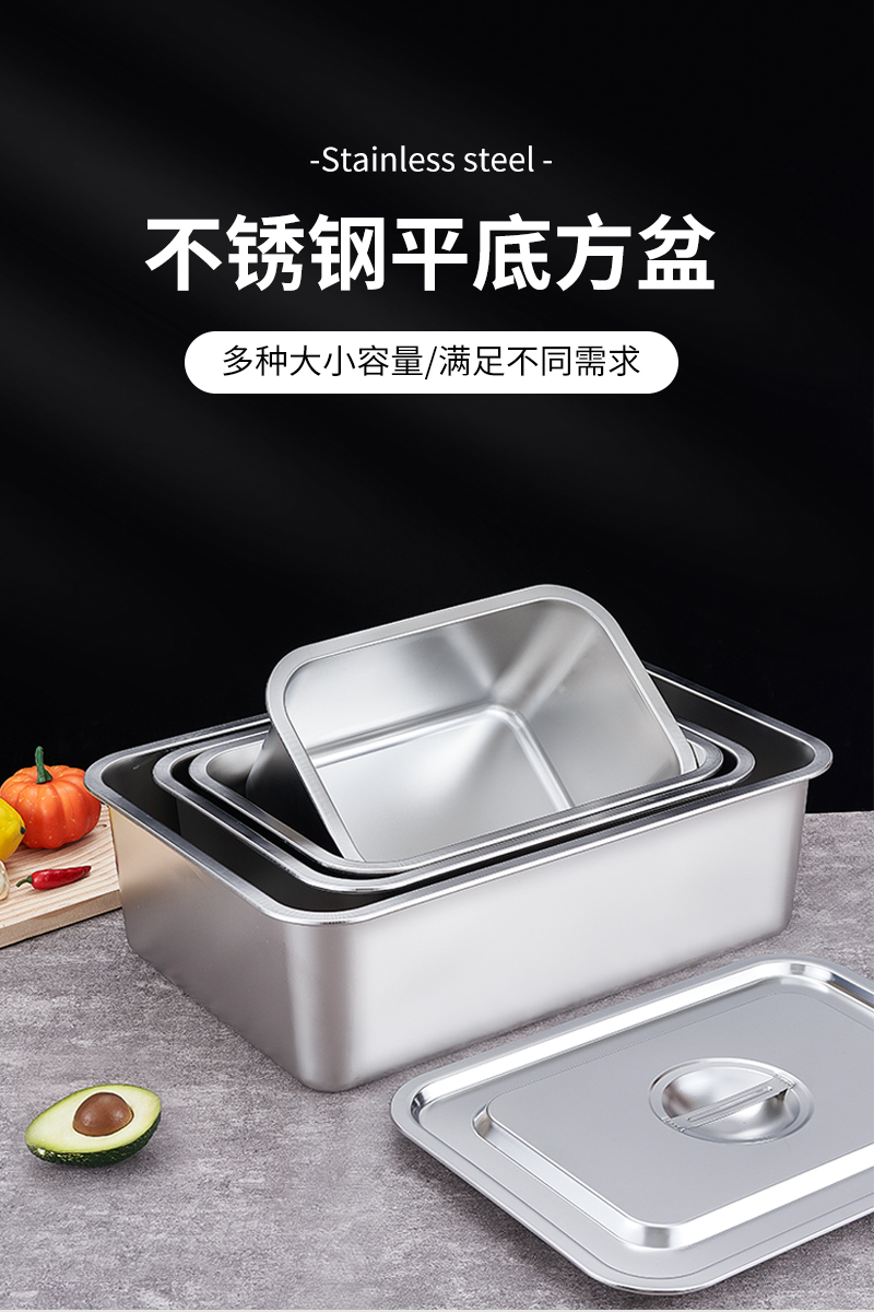O & 304 스테인레스 스틸 스퀘어 분지 심화 트레이 직사각형 스퀘어 플레이트 뷔페 부분 분지 패스트 푸드 야채 분지 커버스토어 가기