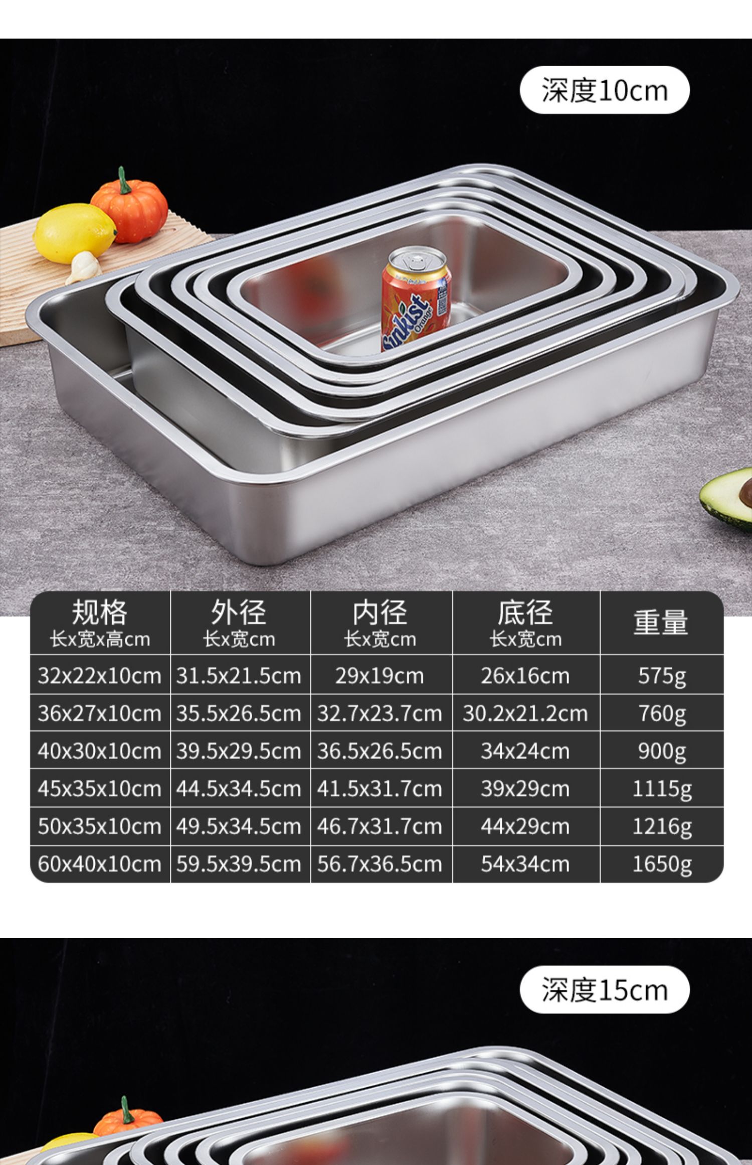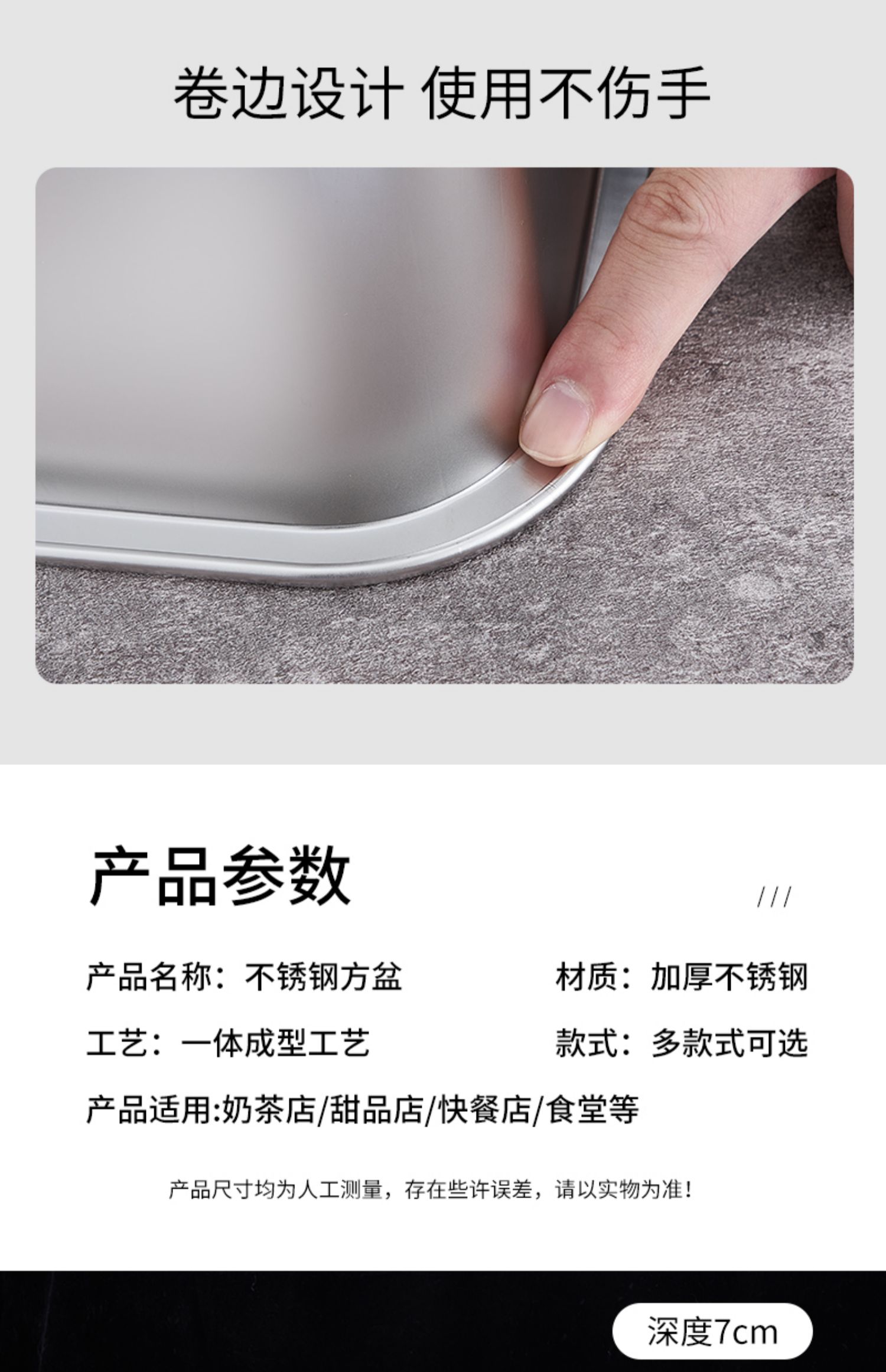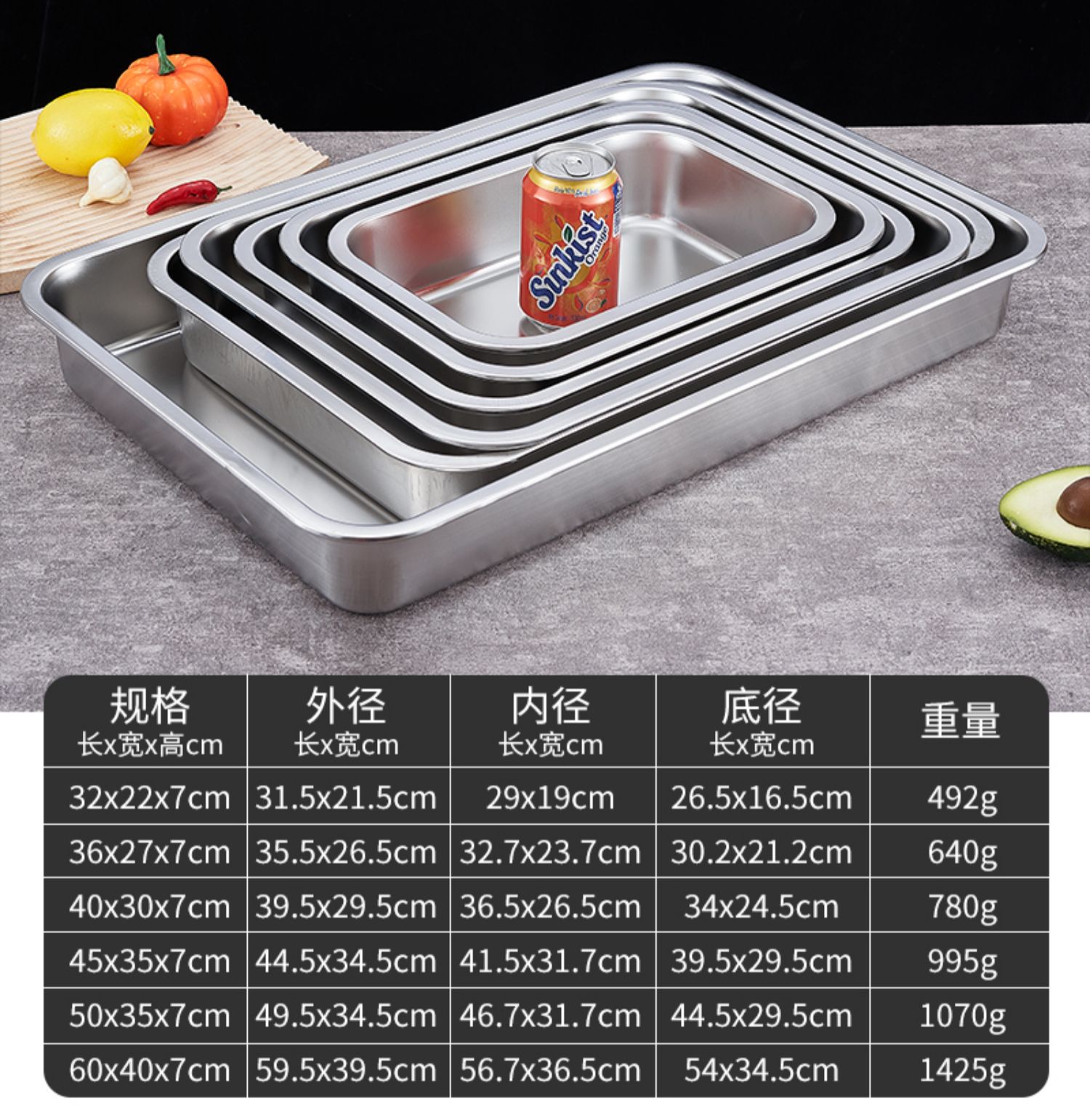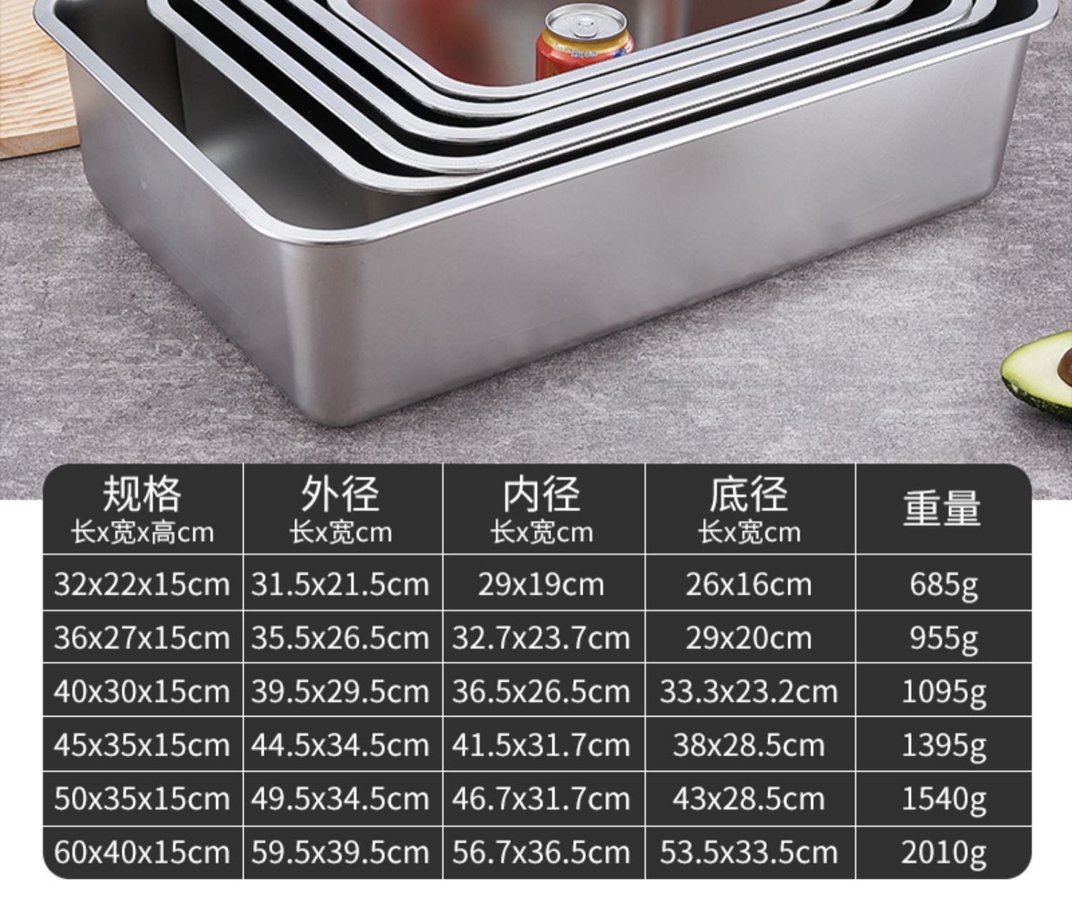 O & 304 스테인레스 스틸 스퀘어 분지 심화 트레이 직사각형 스퀘어 플레이트 뷔페 부분 분지 패스트 푸드 야채 분지 커버스토어 가기