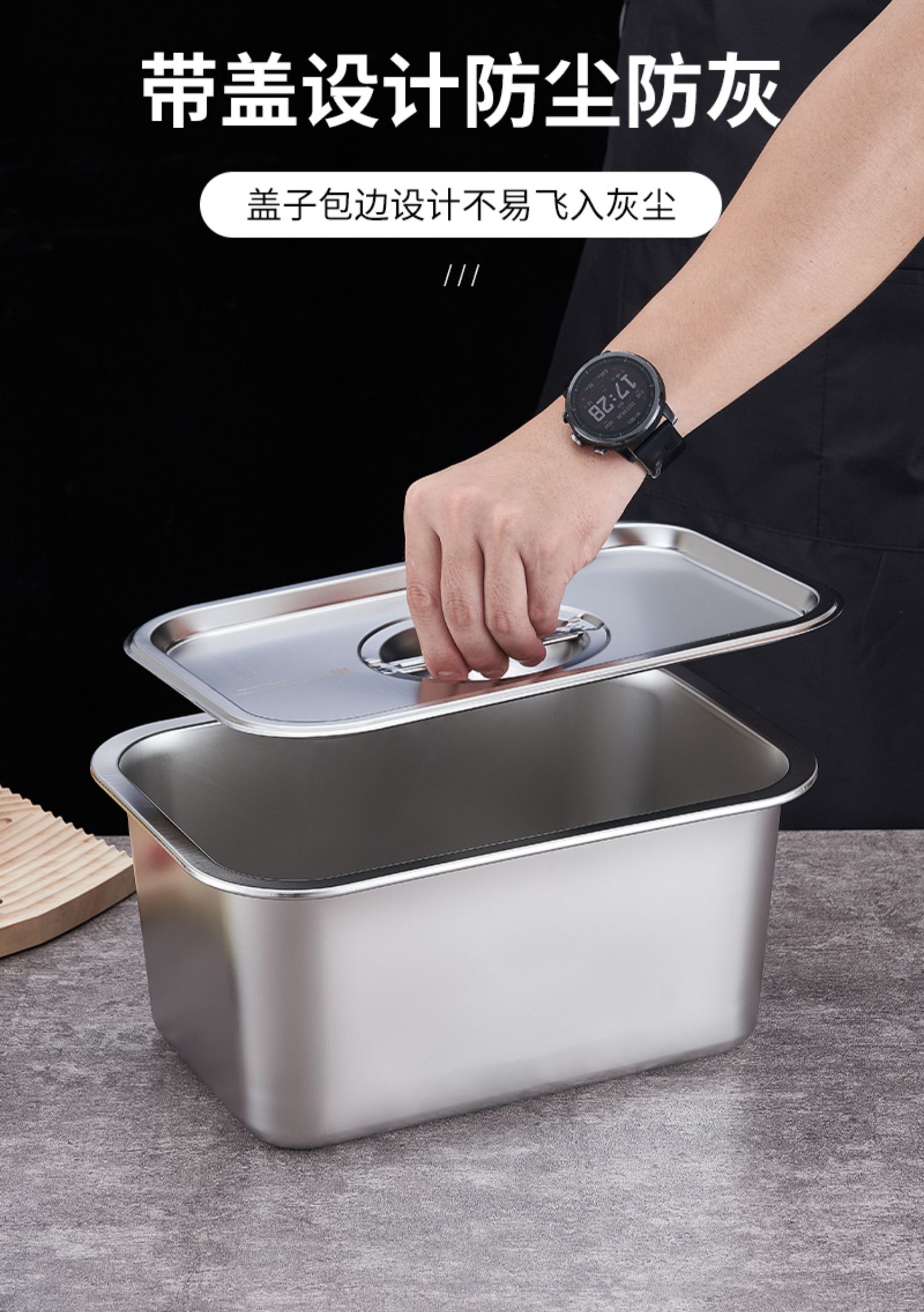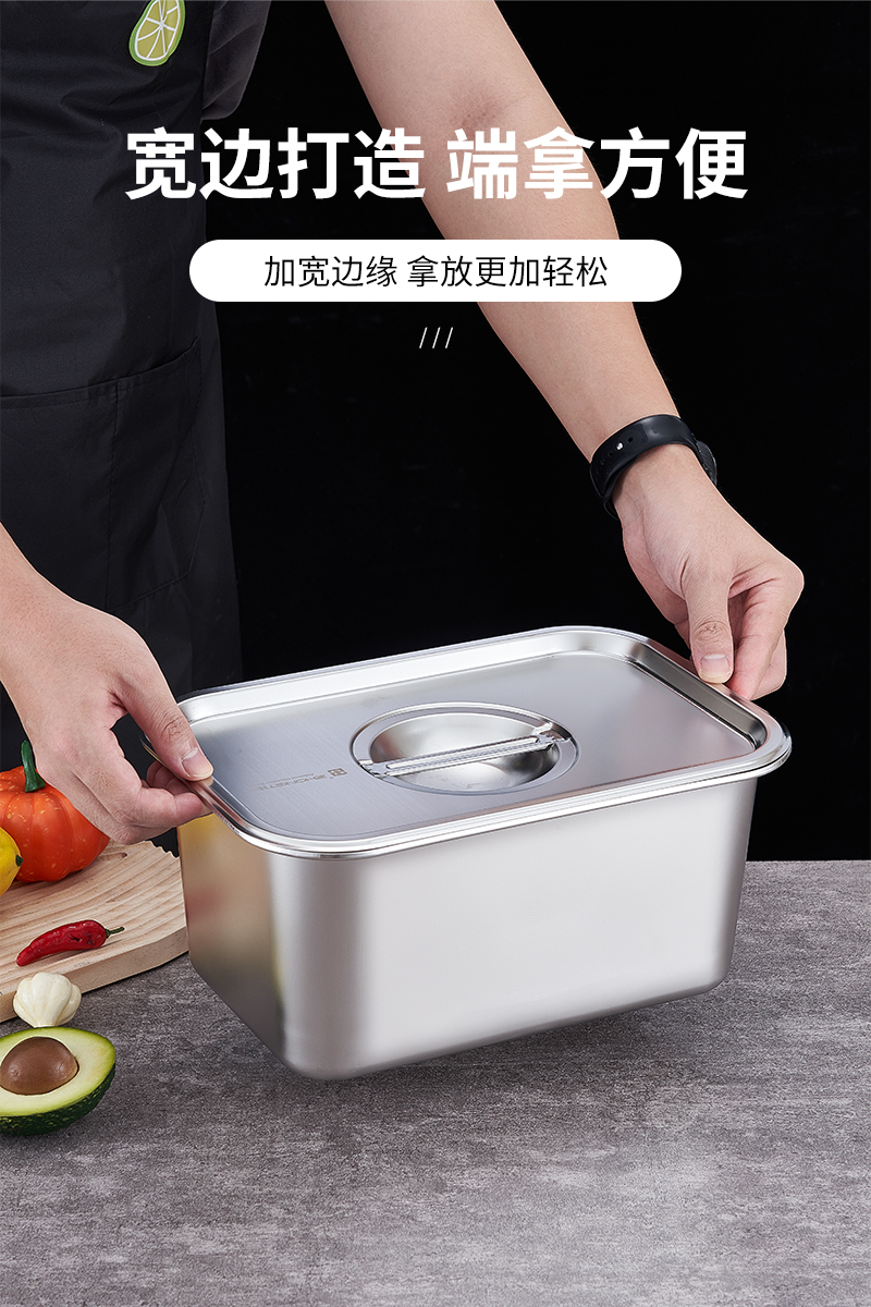 O & 304 스테인레스 스틸 스퀘어 분지 심화 트레이 직사각형 스퀘어 플레이트 뷔페 부분 분지 패스트 푸드 야채 분지 커버
