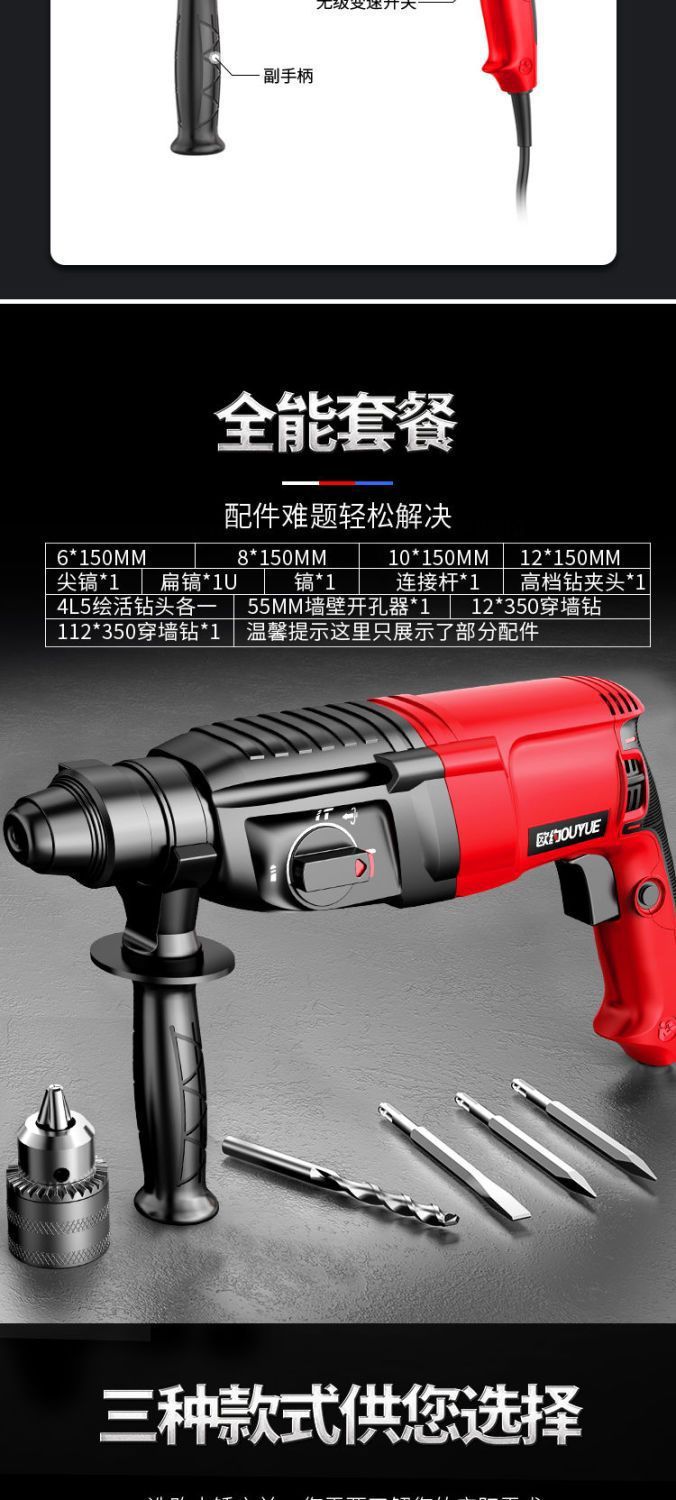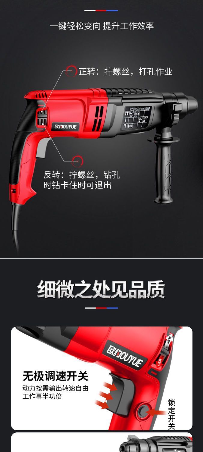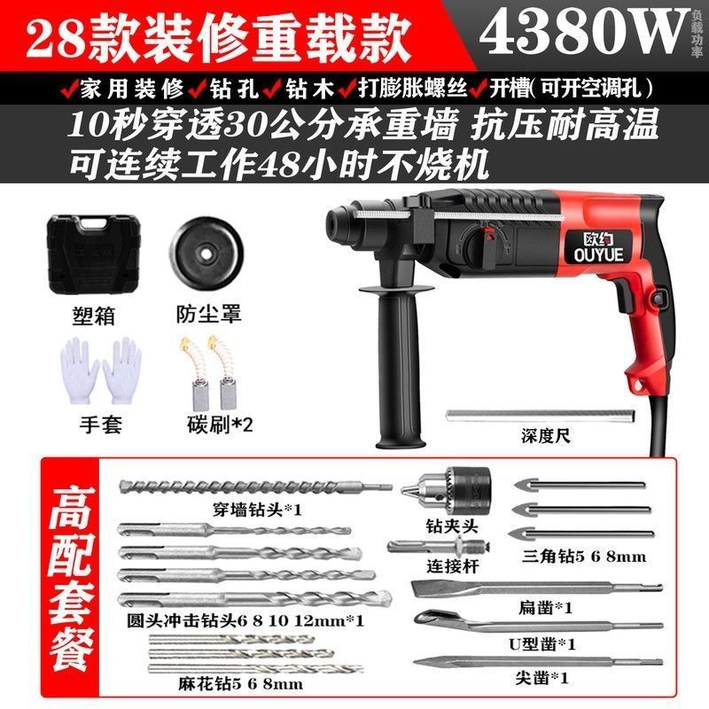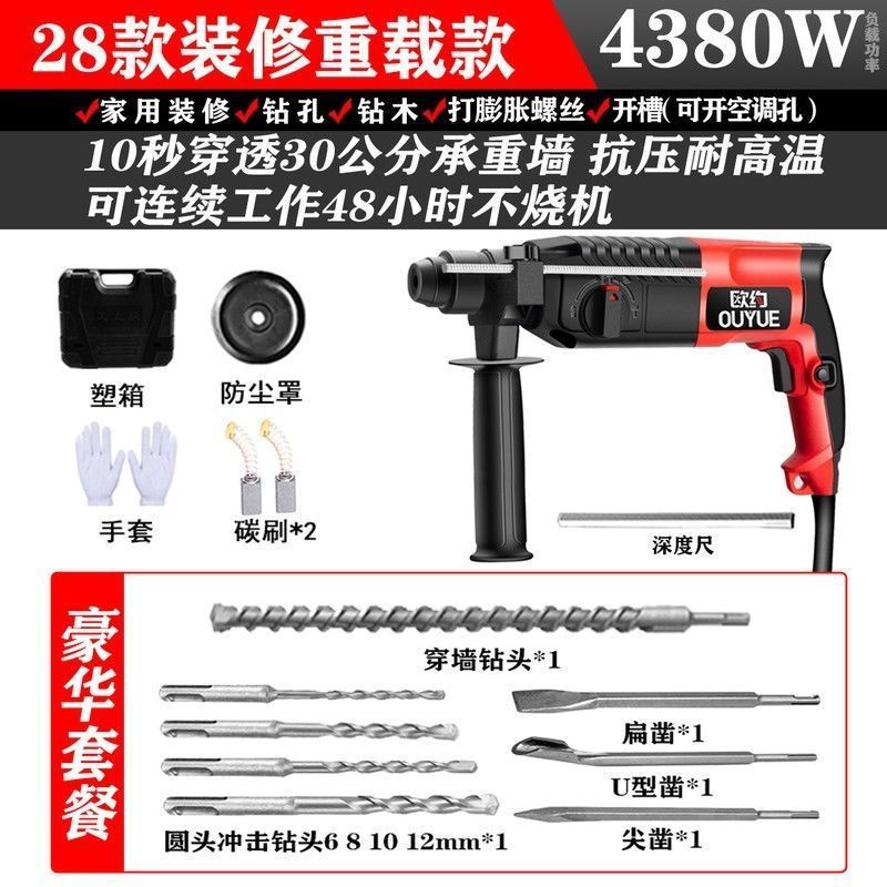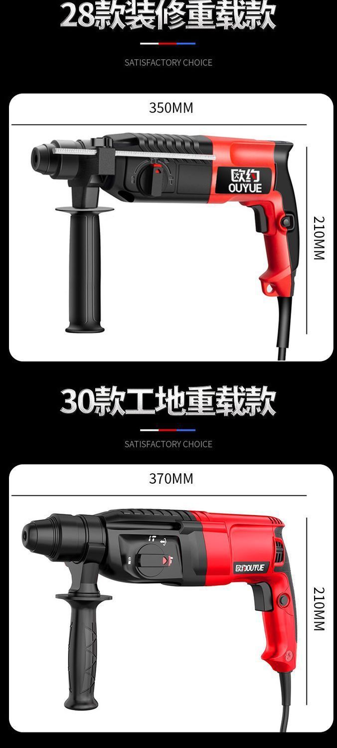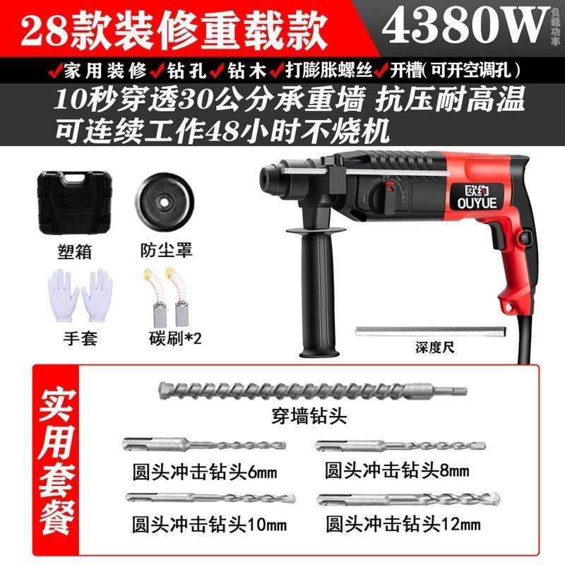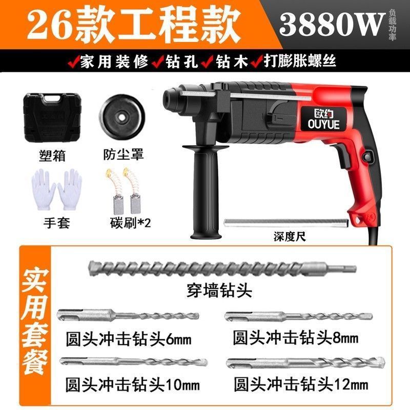 Ouyo 경량 전기 해머 전기 선택 전기 드릴 작은 가정용 고출력 충격 드릴 산업 등급 콘크리트 전기 시계 3 사용