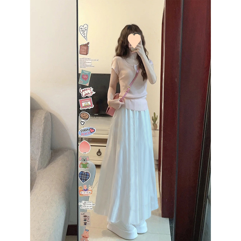 신선한 흰색 치마 여자의 중간 길이 여름 2024 새로운 스타일 긴 치마 작은 남자를위한 높은 허리 치마스토어 가기